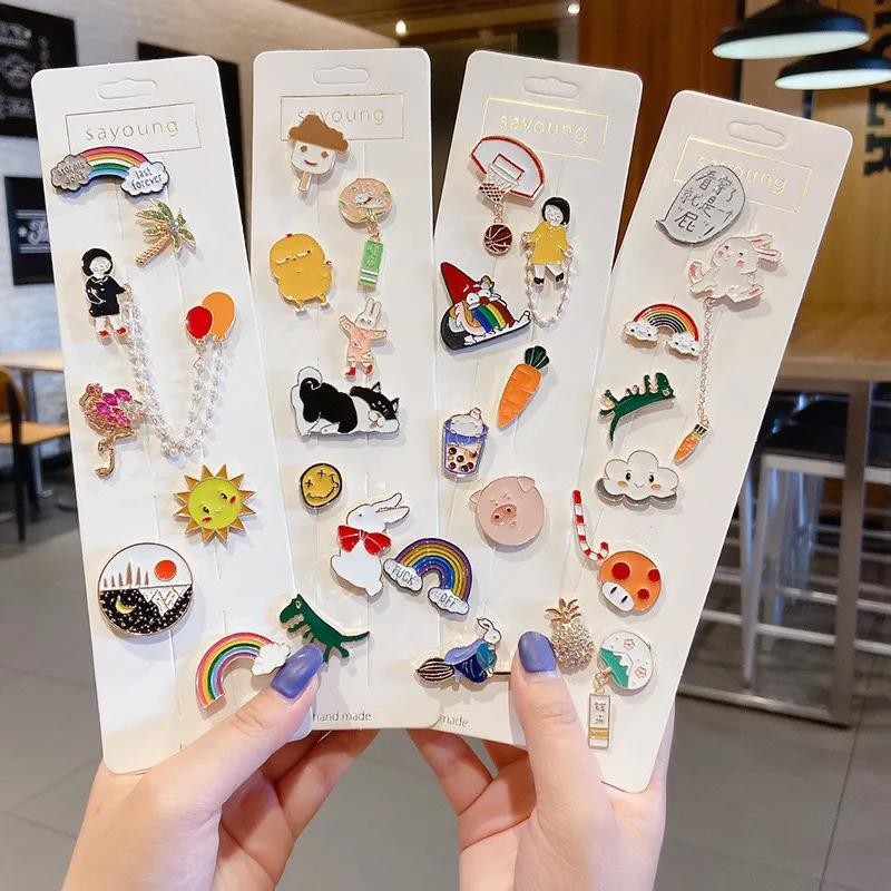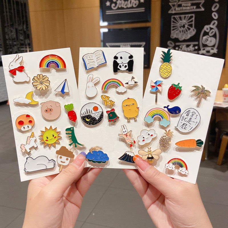 30 شارات عشوائية لطيف Ins المد شخصية شارة دبابيس اكسسوارات الكرتون الملابس المعدنية الخريف والشتاء مجوهرات صغيرة