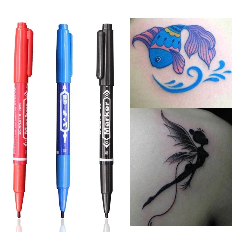 3 قطعة قلم تحديد الوشم الجلد ماركر غرامة نقطة الحبر سعة كبيرة 0.5 مللي متر و 1 مللي متر سكريد الوشم أداة حبر مقاوم للماء الحاجب قلم الوشم