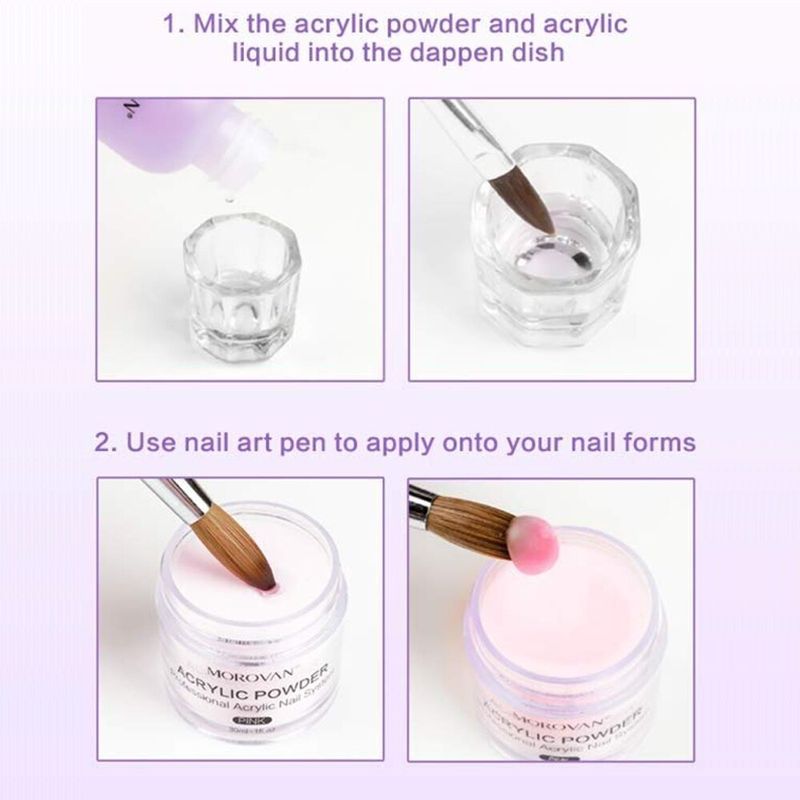2. فرشاة مسحوق الاكريليك على الأظافر مع السائل الاكريليك.