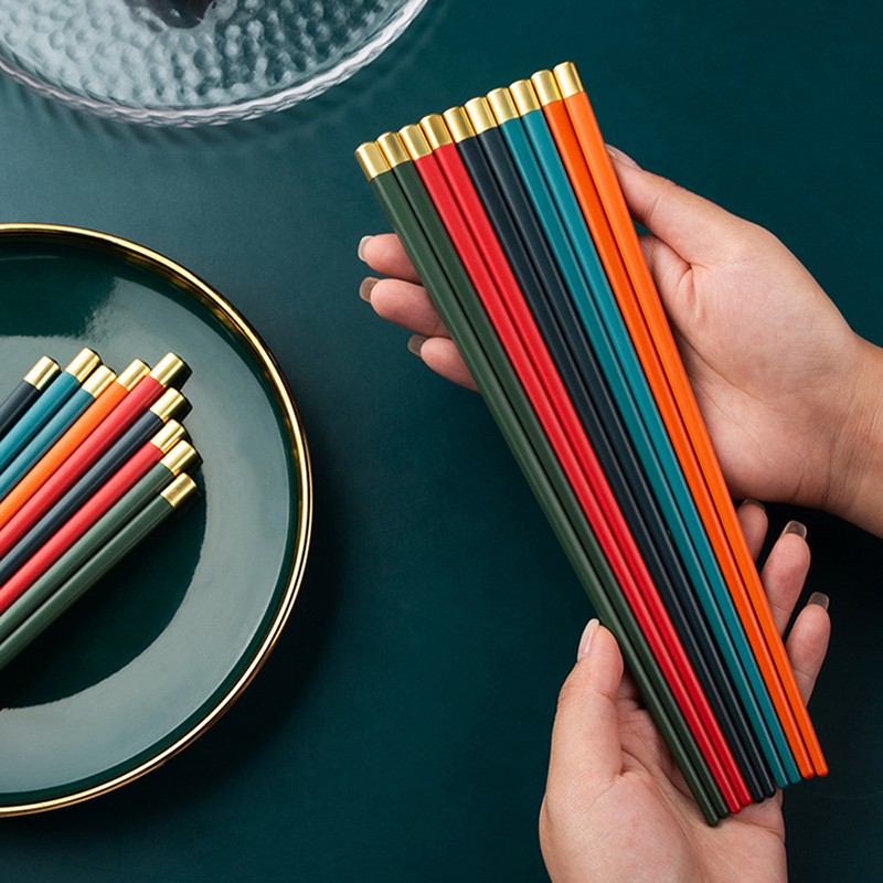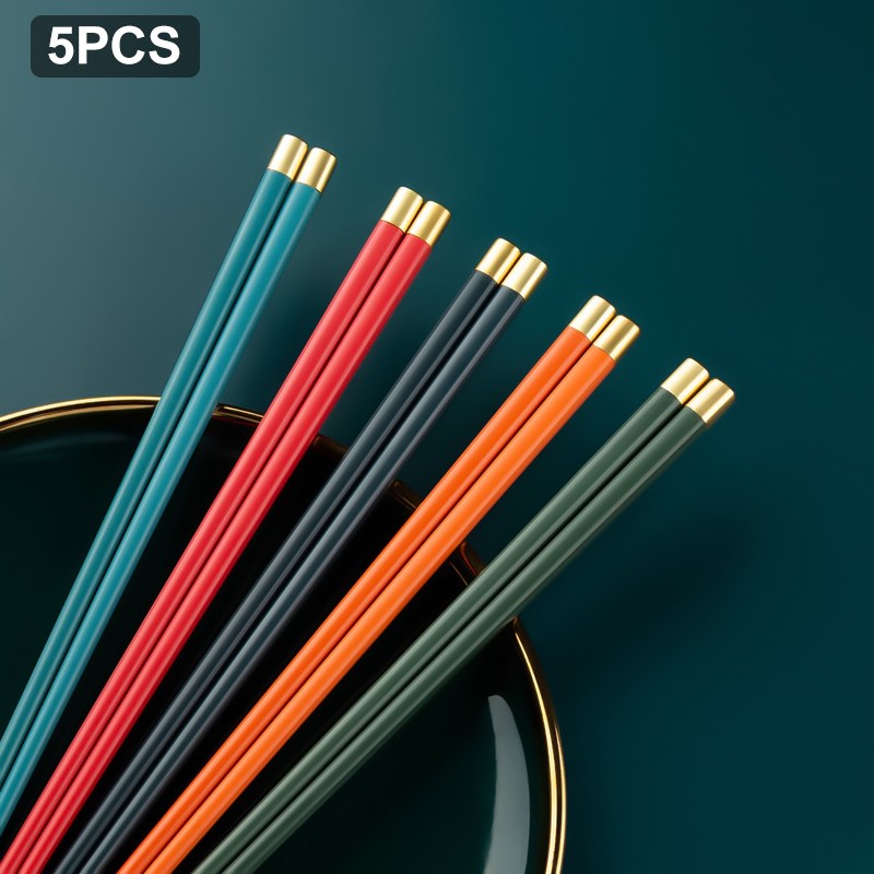 5 أزواج من عيدان تناول الطعام الصينية اليابانية أعواد السوشي مجموعة عيدان الطعام الكورية المصنوعة من السبائك القابلة لإعادة الاستخدام أدوات مائدة للمطبخ صحية