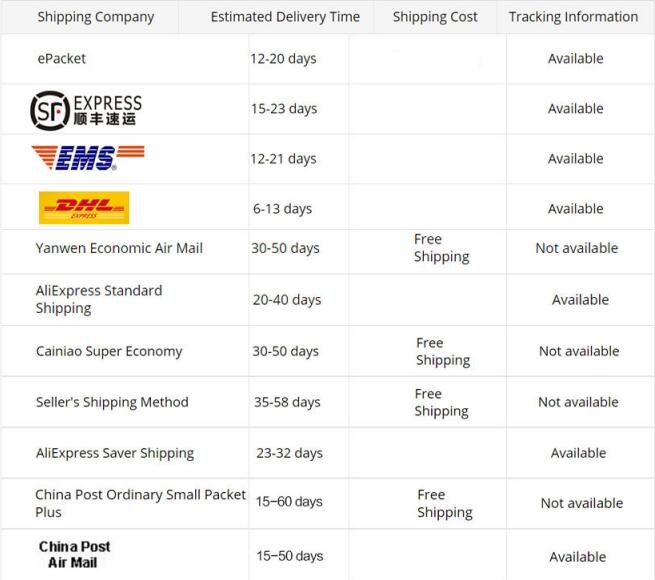1. يرجى ملاحظة إذا اخترت البريد العادي ، لا توجد معلومات تتبع في بلد المقصد ، وعادة ما يستغرق 30-60days ، إذا لم تستلم في غضون 60 يوما يرجى الاتصال بنا للحصول على استرداد. يرجى عدم النزاع في غضون 60 يومًا.