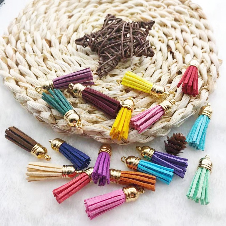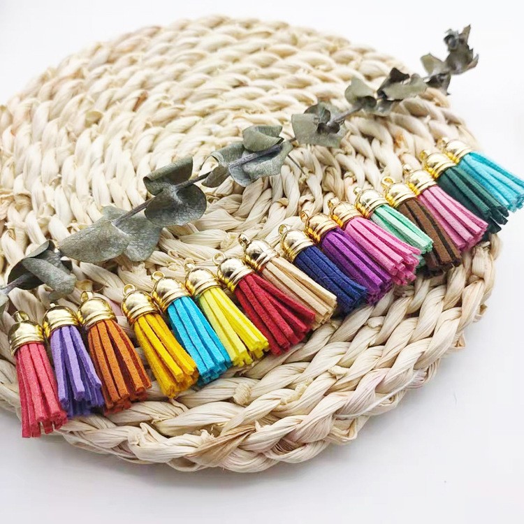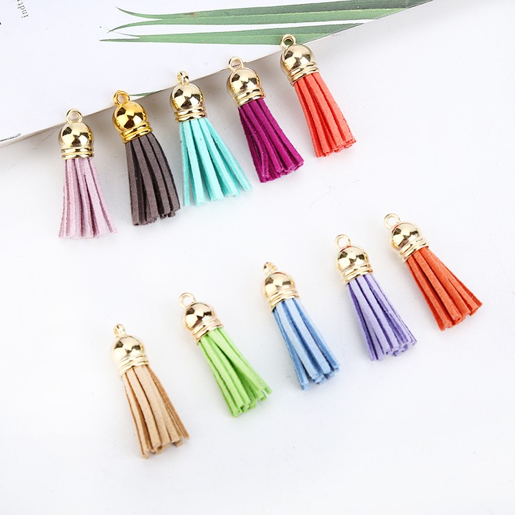 60/100 قطعة 38 مللي متر الذهب الشظية الجلد المدبوغ فو الجلود شرابة ل المفاتيح الهاتف المحمول الأشرطة مجوهرات الصيف قلادة جالبة للحظ العثور