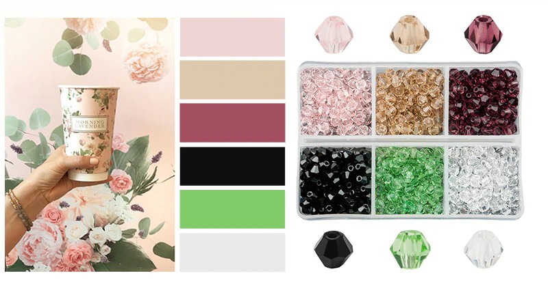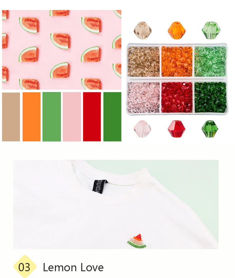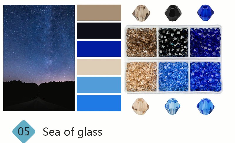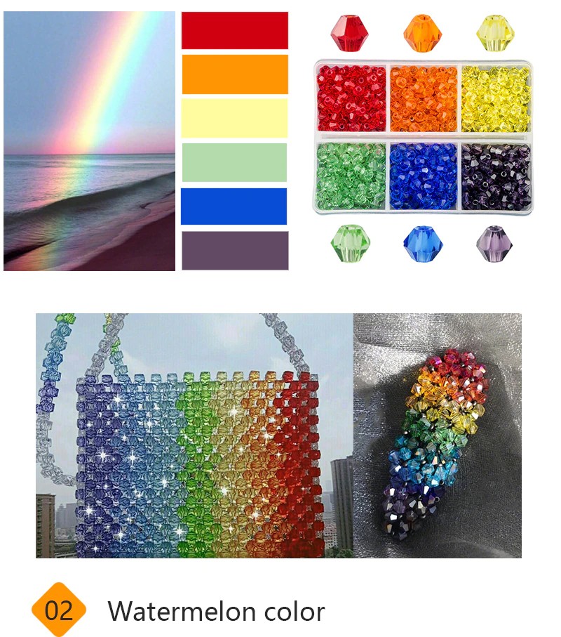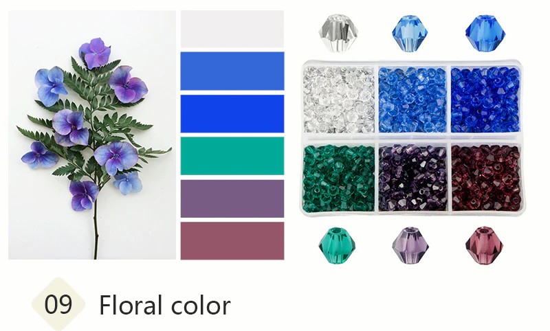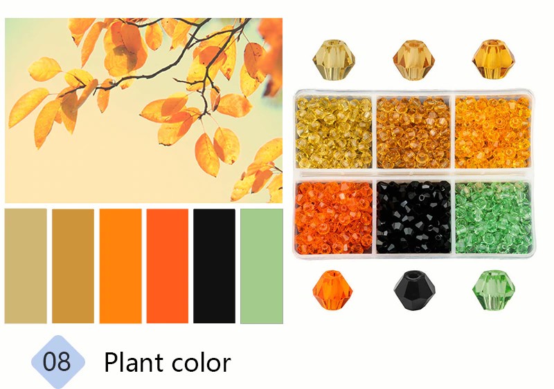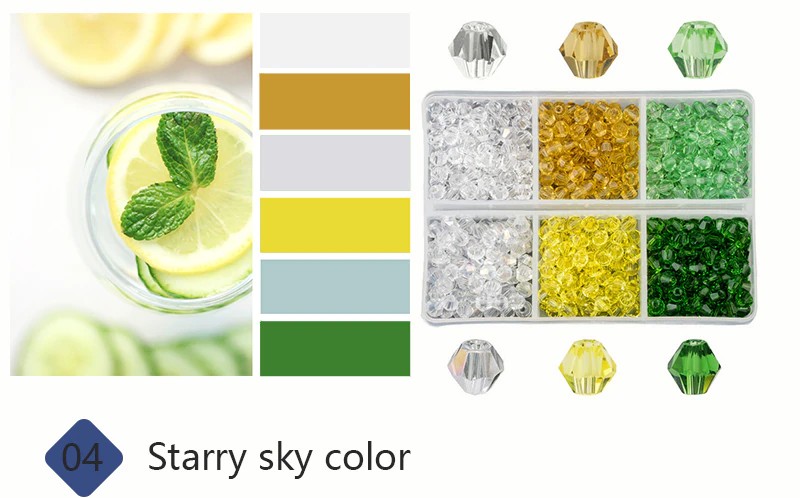 كل صندوق لديها 6 ألوان الخرز ، كل لون 100 قطعة ، إجمالي 600 قطعة/صندوق. هناك 9 أنواع مطابقة الألوان للاختيار من بينها ، كل منها لديه معنى مطابقة التصميم.