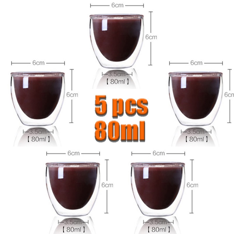 80 مللي كوب مزدوج الجدار شفاف اليدوية مقاومة للحرارة الشاي شرب أكواب صغيرة ويسكي كوب 100 مئوية قهوة اسبريسو كوب حار