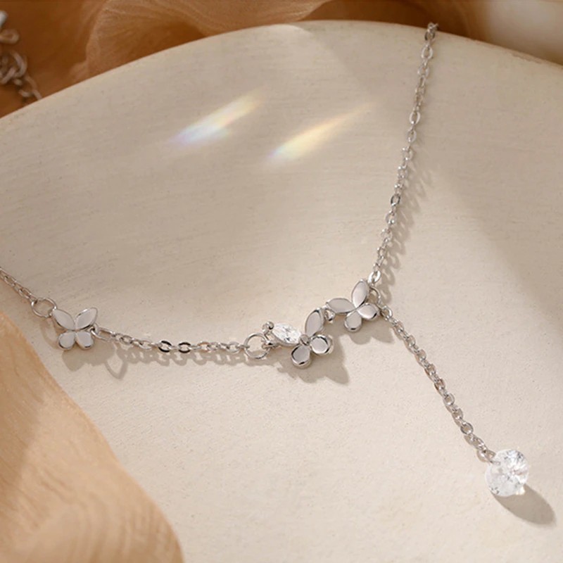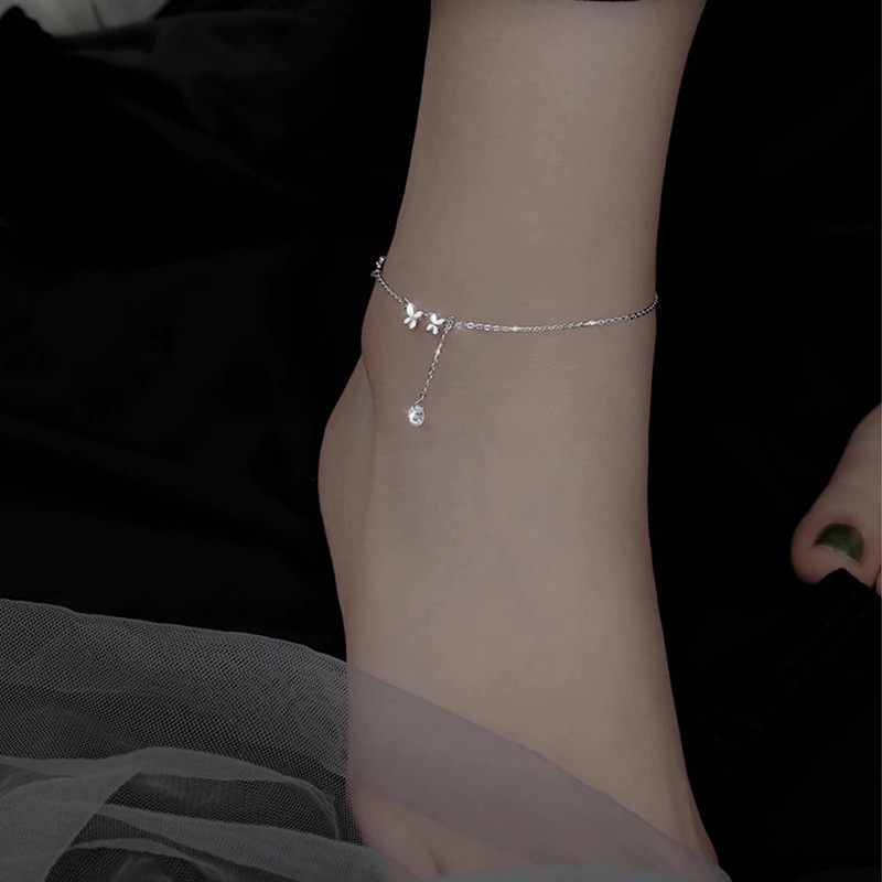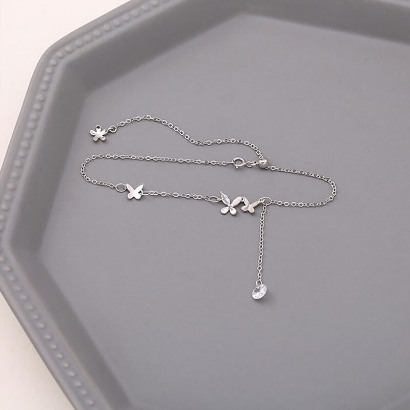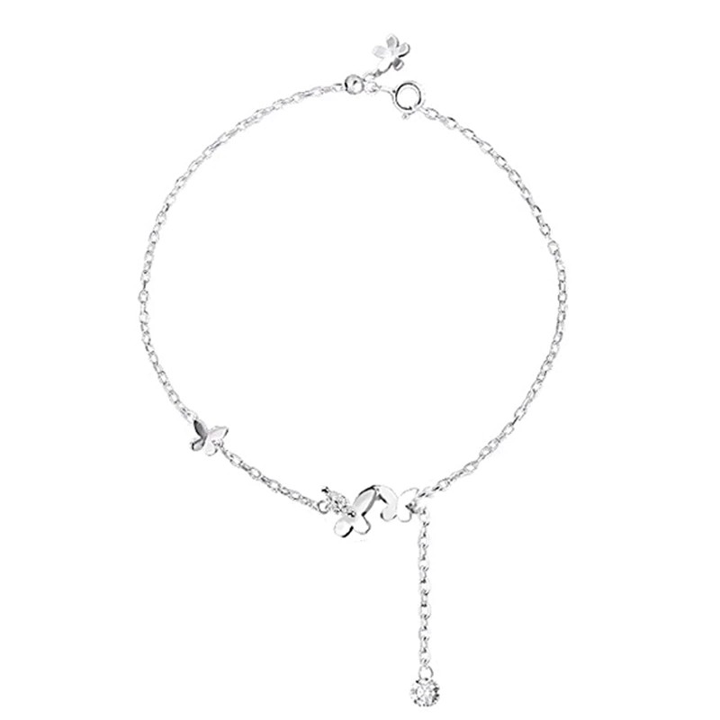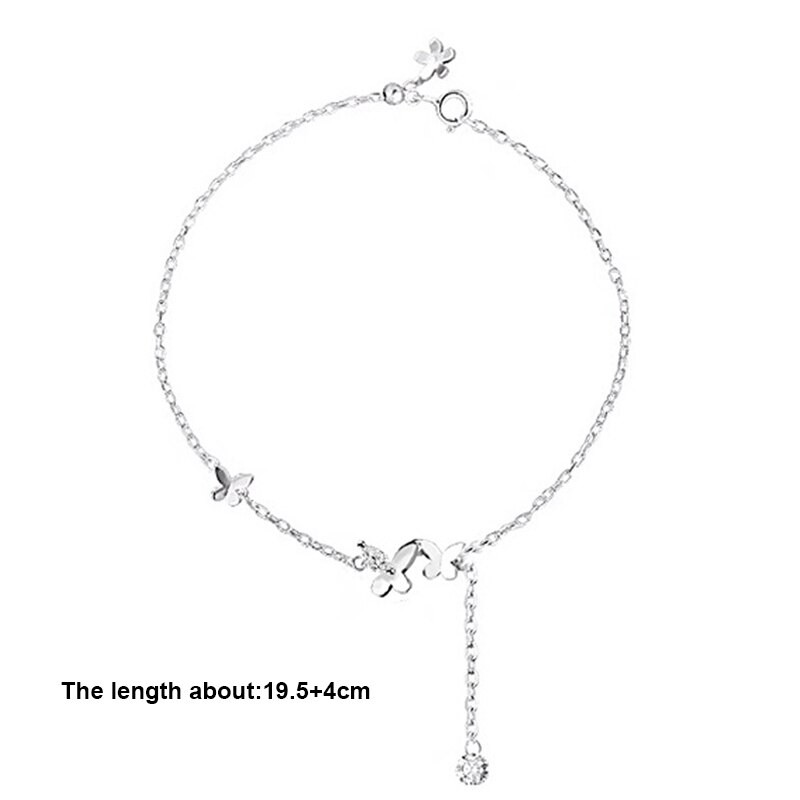 Anenjery 925 فضة فراشة شرابة خلخال للنساء بسيطة الحلو سوار الزركون خلخال مجوهرات الساخن بالجملة