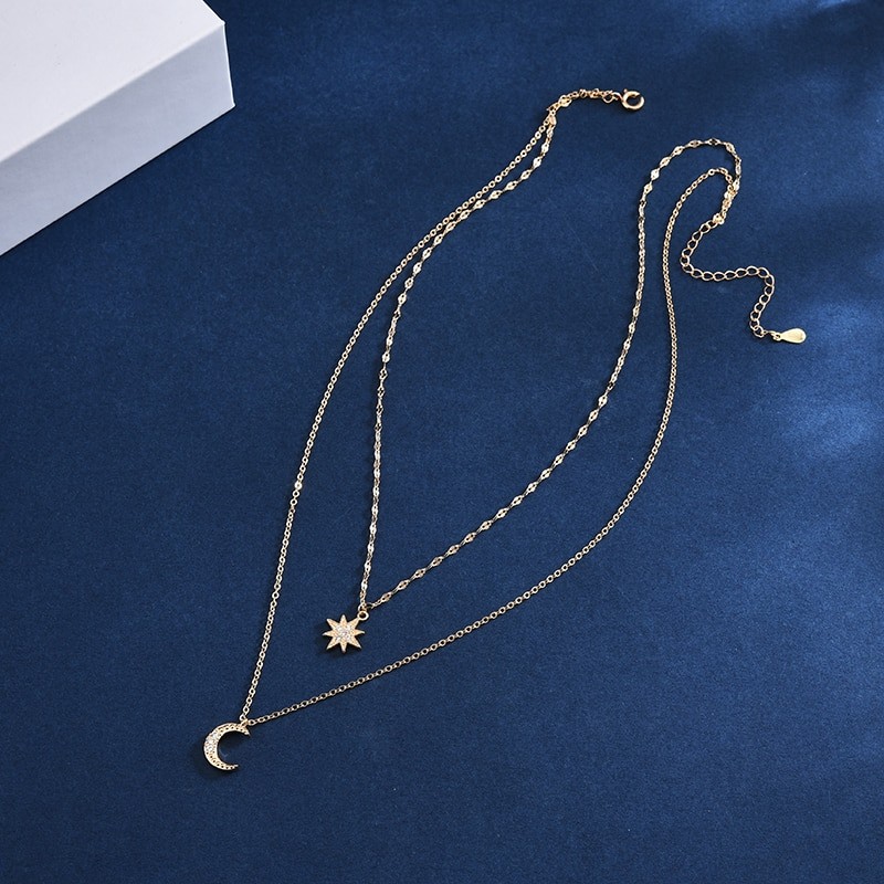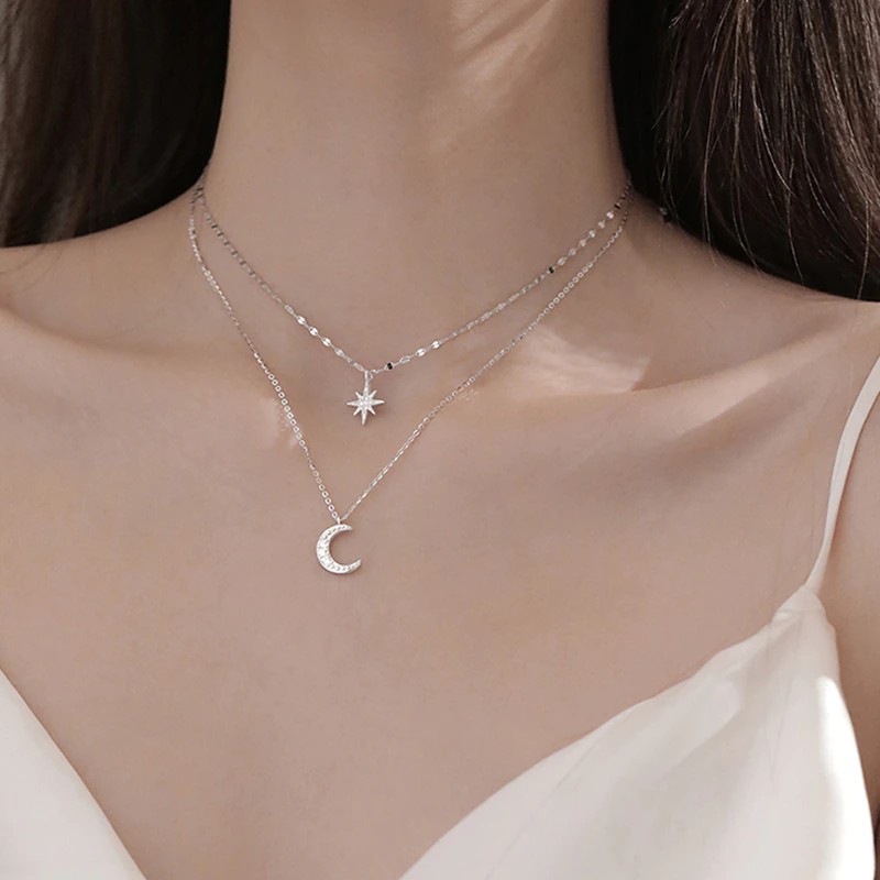 925 فضة بسيطة نجوم طبقة مزدوجة المختنق لامعة الزركون القمر المعلقات القلائد للنساء هدية غرامة مجوهرات Nk092
