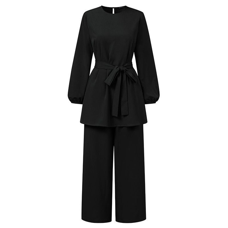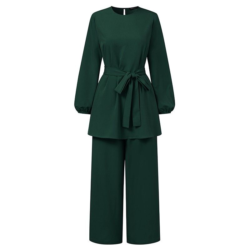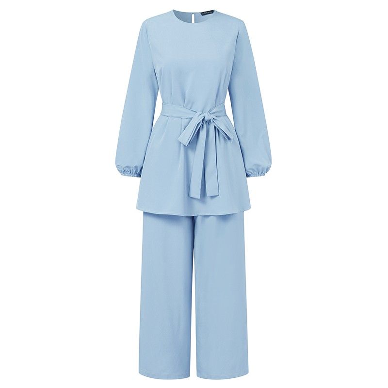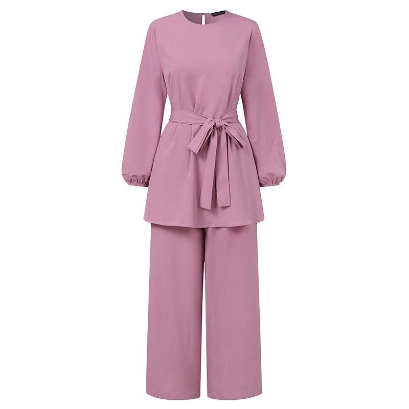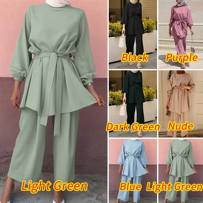 عباية تركيا ملابس مسلمة المرأة بلوزة الخريف السراويل الطويلة الأحدث Zanzea قمصان طويلة الأكمام الإناث مربوط القمصان 2 قطعة