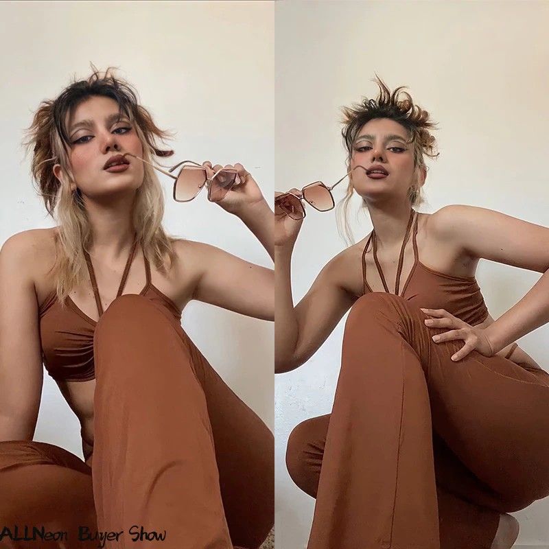 Allنيون Y2K الشارع الشهير مثير ضمادة الأزرق المشارك كلمات الدعاوى 2000S موضة الرسوم الزاهية الرسن العلوي وارتفاع الخصر مضيئة السراويل 2 قطعة مجموعة