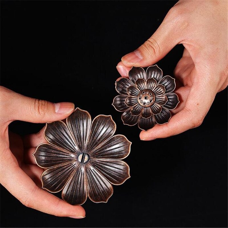 مبخرة سبيكة حامل عصا البوذية لوتس خط البخور لوحة خشب الصندل لفائف قاعدة المعابد اليوغا استوديوهات ديكور المنزل