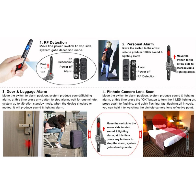 كاشف الترددات اللاسلكية والتنبيه الشخصي G718 رائع بالنسبة لك ، الجهاز لديه 5 وظائف: