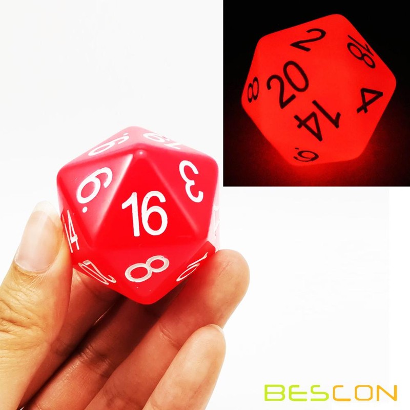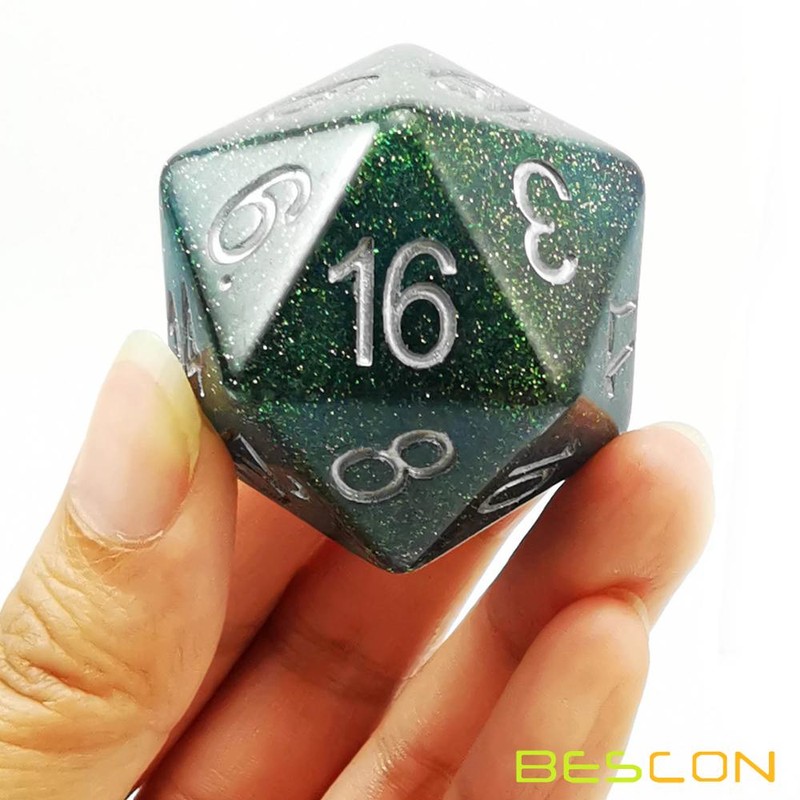 Bescon-نرد جامبو لامع D20 مقاس 38 مللي متر ، مكعب كبير الحجم 20 جانبًا 1.5 بوصة ، مجموعة ألوان مختلفة صلبة ولامعة