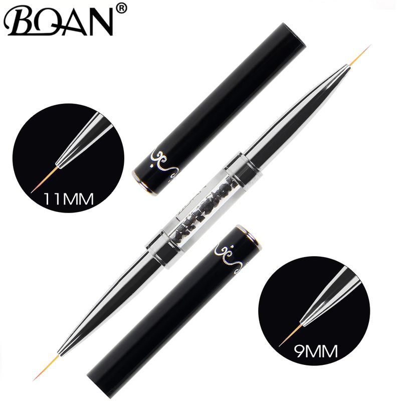 BQAN الأسود مزدوجة رئيس مقبض كريستال 7 مللي متر و 11 مللي متر الرسم فرشاة بطانة فرشاة تلوين القلم هلام البولندية كريستال مسمار الفن مانيكير أدوات