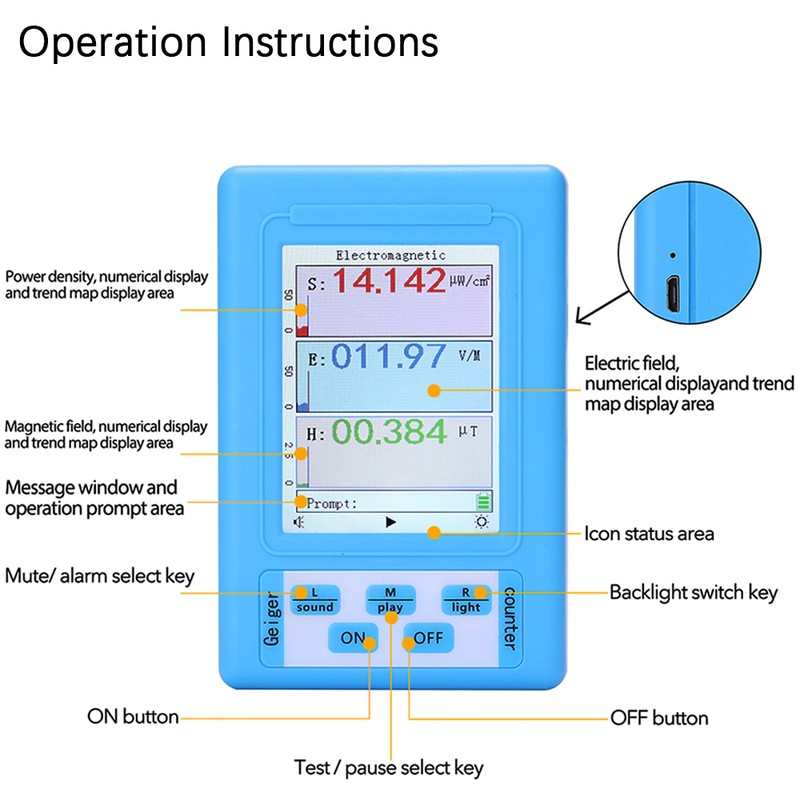 Br-9A المحمولة كاشف الإشعاع الكهرومغناطيسي Emf متر عالية الدقة المهنية الإشعاع قياس الجرعات اختبار