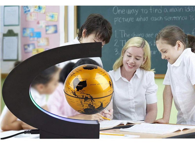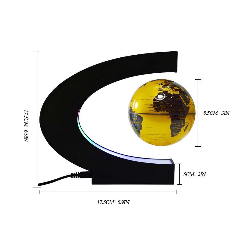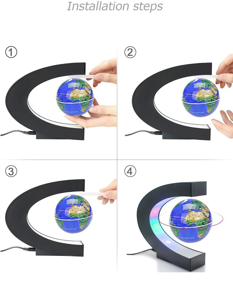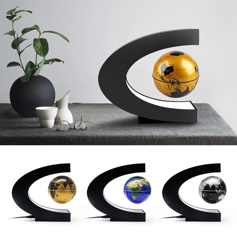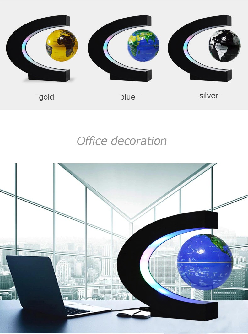 C شكل المغنطيسي العائمة غلوب خريطة العالم مع مصباح ليد هدايا مدرسة معدات التدريس منضدة المكتب المنزلي الديكور