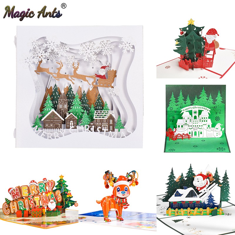 بطاقات عيد الميلاد سانتا ركوب عيد الميلاد بطاقة العام الجديد عطلة الشتاء بطاقات تحية مع أظرف