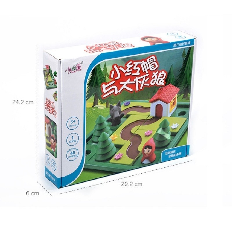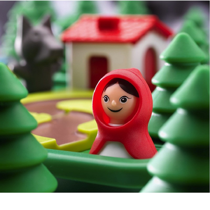 1. اختيار التحدي. وضع المنزل ، والأشجار ، وركوب الأحمر هود والذئب على لوحة اللعبة كما هو مبين.