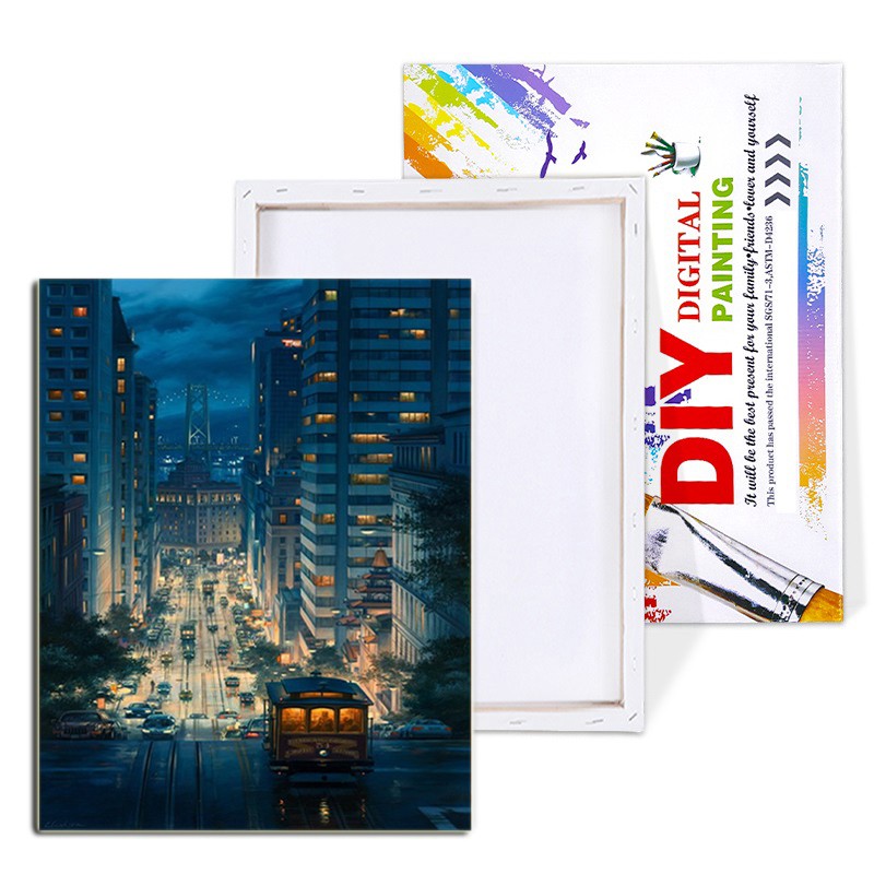 مدينة المشهد الطلاء بواسطة أرقام للكبار أطقم يدوية على قماش مع مؤطرة النفط صورة رسم التلوين حسب عدد