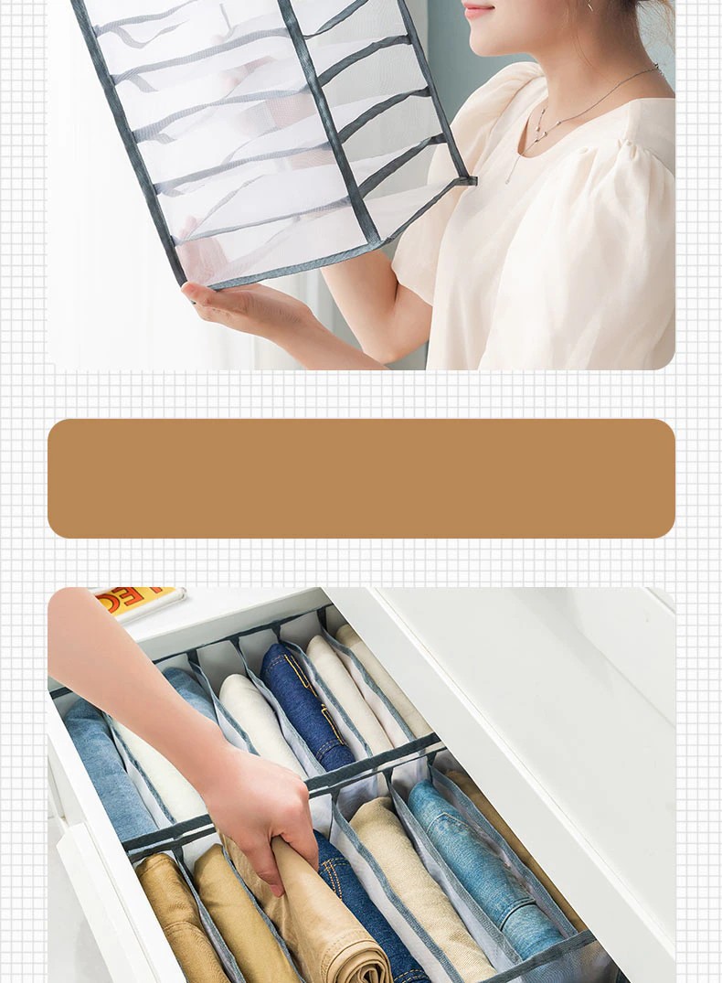 نظيفة وصحية الجينز مقصورة صندوق تخزين خزانة الملابس درج شبكة التقسيم بنطلون التقسيم المنزلية تخزين الرف