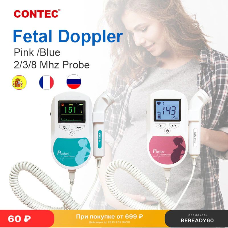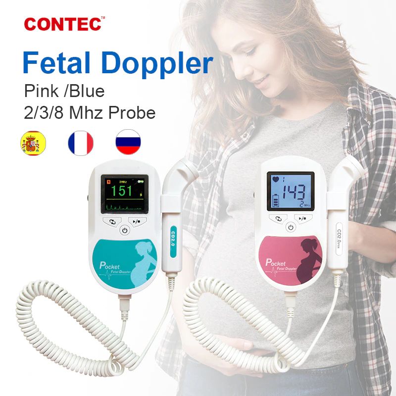 Contec الجنين مضاعف مقياس نبض القلب الملاحظة الخلفية Lcd اللون الوردي + الحرة هلام 2Mhz 3Mhz 8Mhz التحقيق الطفل مقياس نبض القلب الملاحظة التحقيق