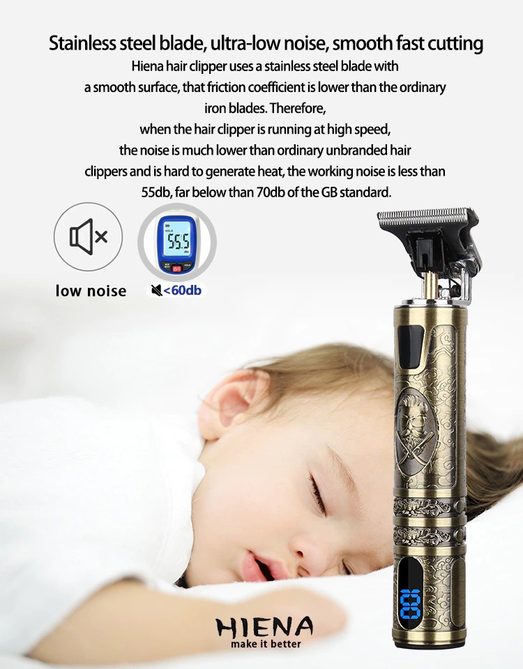 يستخدم Hiena مقص الشعر شفرة فولاذية غير قابلة للصدأ مع سطح أملس ، أن معامل الاحتكاك أقل من شفرات الحديد العادية. لذلك ، عندما يتم تشغيل مقص الشعر بسرعة عالية ، والضوضاء أقل بكثير من مشابك شعر غير ذات علامة تجارية عادية ويصعب توليد الحرارة ، وضجيج العمل أقل من 55db ، أقل بكثير من 70db من معيار GB.