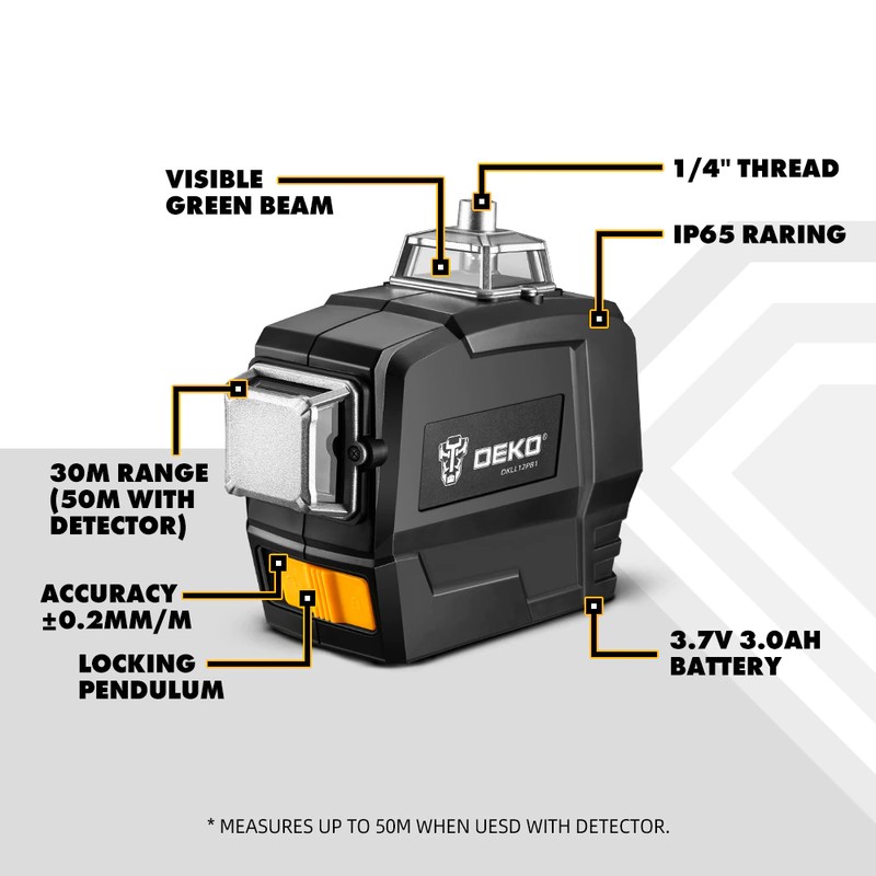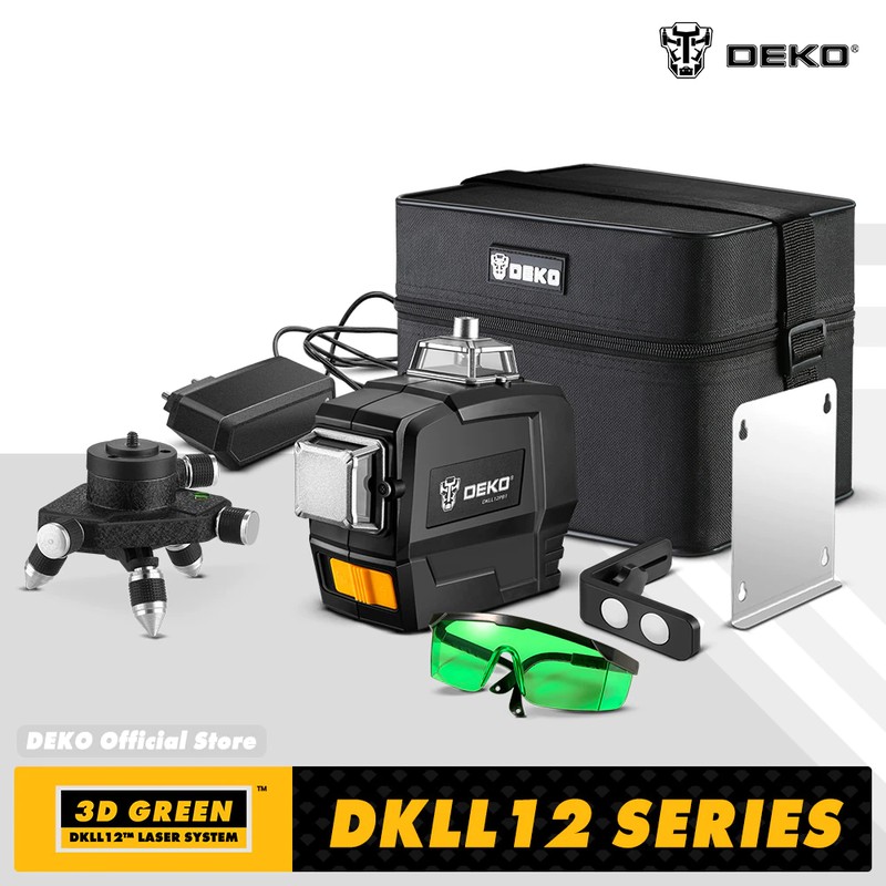 سلسلة Deko Dkll12 أدوات بناء احترافية لمستوى الليزر 12 خط أخضر للتسوية الذاتية 360 4D حامل ثلاثي القوائم القوي للقياس