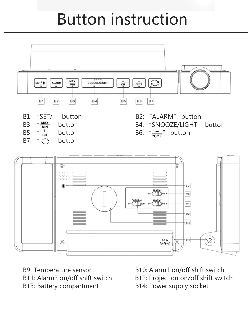 1. وظيفة التنبؤ بالطقس ؛ 2. الوقت ودرجة الحرارة في الهواء الطلق وظيفة الإسقاط. 3. 4. DCF وظيفة وقت التحكم اللاسلكي لألمانيا. الوقت في شكل اختياري 12/24 ساعة ؛ 5. داخلي/خارجي درجة الحرارة والرطوبة (ديج أو ديغ) ، نطاقات قياس درجة الحرارة في الأماكن المغلقة: -9.9 C (15 F) إلى 50 C (122 F) ، نطاقات قياس درجة الحرارة في الهواء الطلق: -40 ج (-40 و) إلى 70 ج (158 و) ؛ 6. الحد الأدنى/الحد الأقصى لعرض رطوبة الهواء ودرجة الحرارة ؛ 7. 8. في الهواء الطلق نقطة الندى درجة الحرارة ودرجة الحرارة مؤشر الاستعلام. 9. ثلاثة مستوى عرض المخاطر القالب. عرض مستوى الراحة في الأماكن المغلقة عن طريق رمز الوجه ؛ 10. 2 إنذار يومي مع وظيفة غفوة ؛ 11. تقويمية؛ 12. يوم من الأسبوع في 7 لغات اختيار المستخدم ؛ 13. 4 مستويات سطوع الخلفية حدد مع محول الطاقة. 14. تصل إلى 3 أجهزة استشعار عن بعد الاتصال ، تحميص عرض 3 بيانات الطقس الغرفة. (فقط 1 الاستشعار وشملت) ، 60 متر نطاق انتقال في منطقة مفتوحة.
