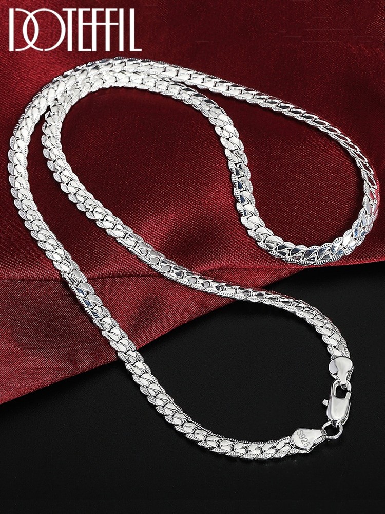 Doteffil 925 فضة 6 مللي متر كامل جانبية قلادة 18/20/22/24 بوصة سلسلة للمرأة الرجال موضة الزفاف خطوبة مجوهرات