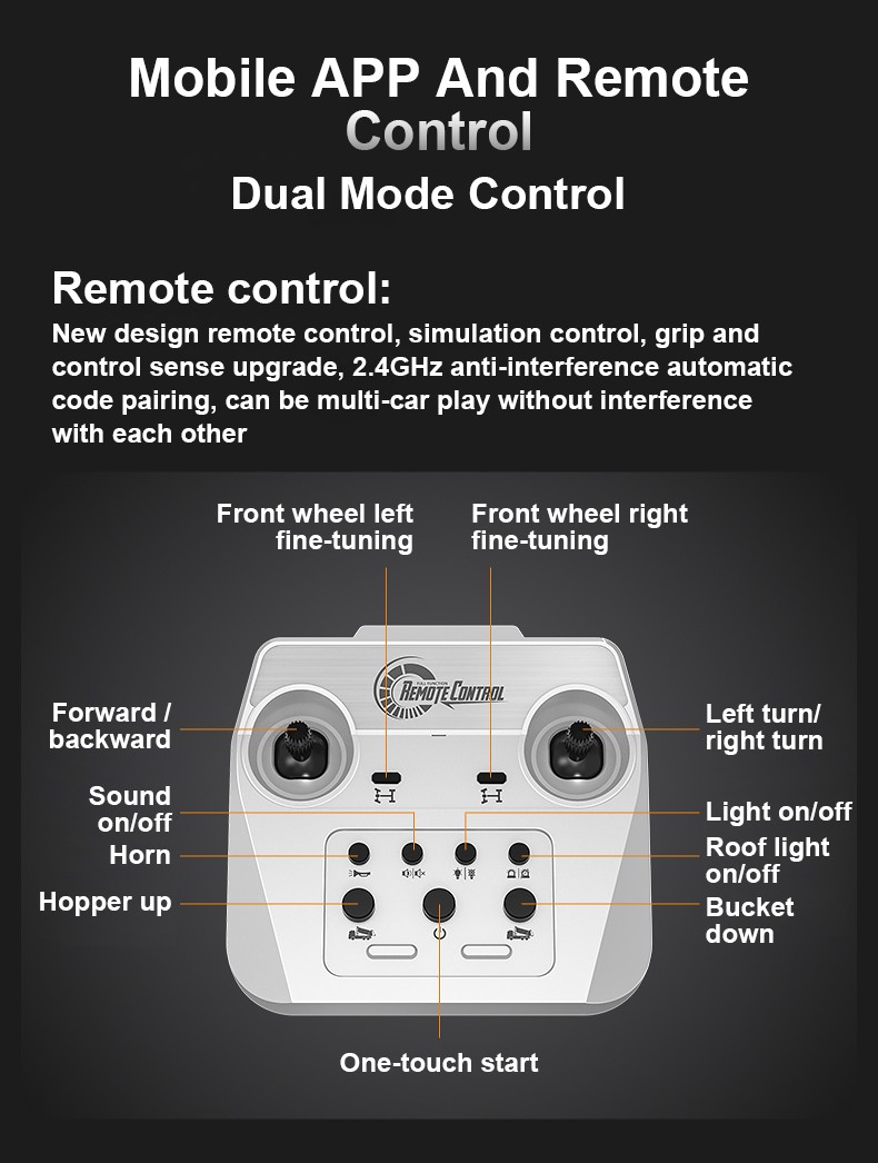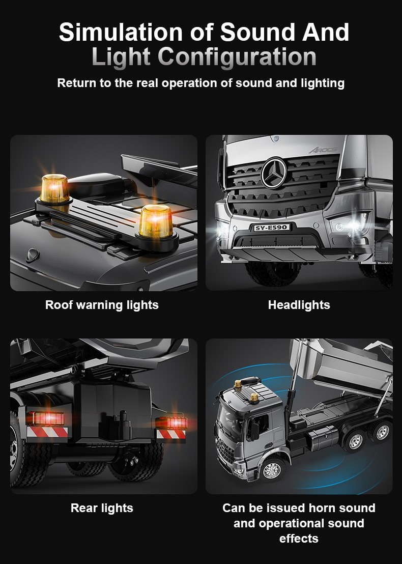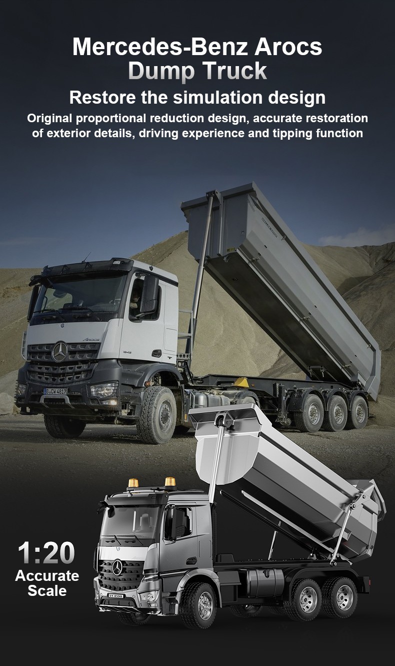 مزدوجة E 1/20 E590 سبيكة مركبة يتم التحكم بها عن بُعد 2.4G سيارة التحكم عن بعد كاتربيلر نموذج شاحنات تفريغ السيارات جرار راديو قلابة لعبة الأولاد