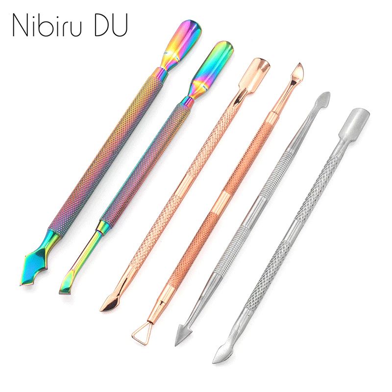 أداة دفع الجلد الميت على الوجهين ، مصنوعة من المعدن والفولاذ المقاوم للصدأ ، للتقليم والباديكير والعناية بالأظافر