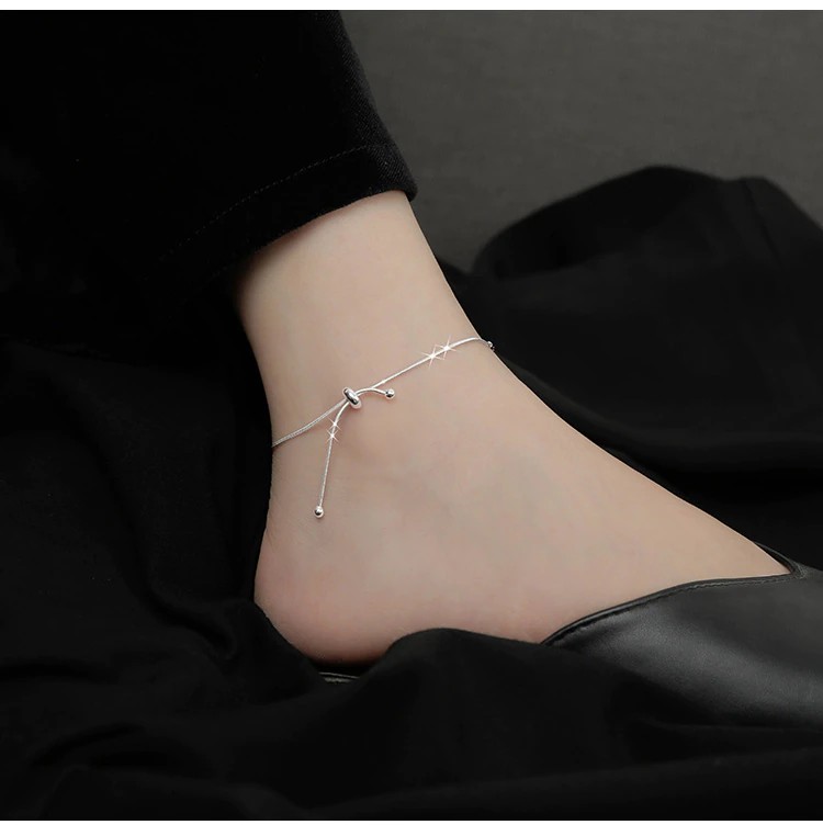 موضة مجوهرات راقية 925 فضة ثعبان سلسلة القوس عقدة الخلخال قابل للتعديل النساء لطيف اكسسوارات