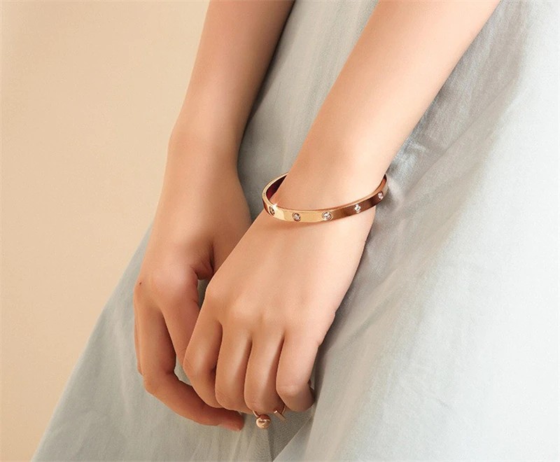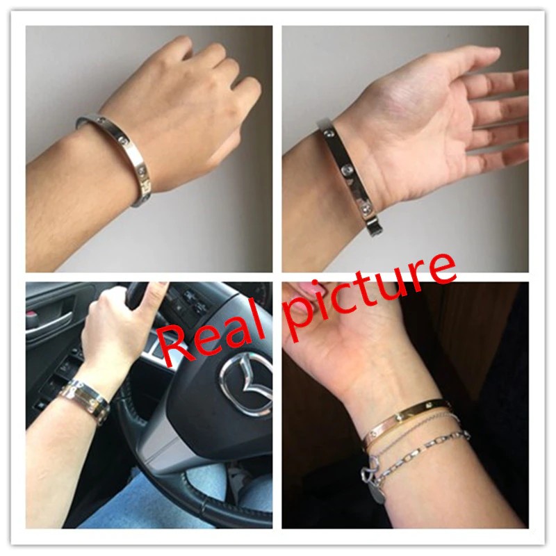 موضة الحب مجوهرات النساء الإسورة التيتانيوم الصلب زوجين مجوهرات كامل تشيكوسلوفاكيا الأبيض كريستال مشبك أساور أساور الرجال B001