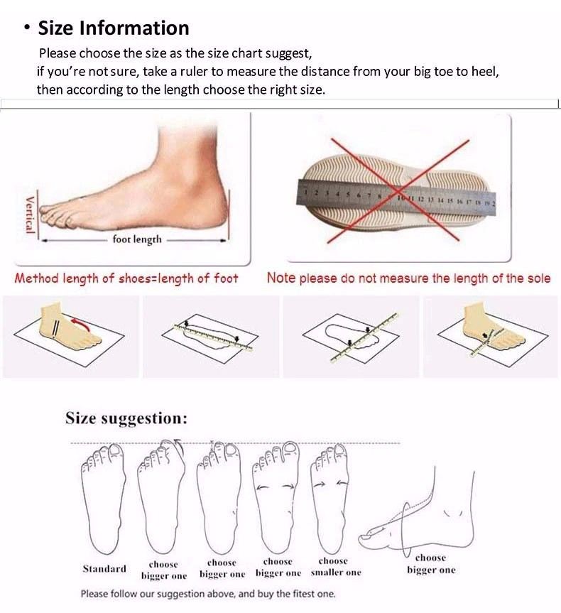 .حزمة:العلامة التجارية الجديدة أحذيةدون مربع 3. يرجى اختيار المقاس وفقًا لطول القدم ، (لا تختار المقاس وفقًا لمقاس بلدك المعتاد!!!) على سبيل المثال:إذا كنت قياسكعب إلى تومقاس 27 سنتيمتر ، الرجاء اختيار المقاس 44 = المقاس الأمريكي 10 4.لدينا أحذية ملحوظ أحذية صينية حجم أو المقابلة طول القدم. 5.CN مقاس 44(27 سنتيمتر). هذا 27 سنتيمتر ليس طول نعل أو طول تسولي ، وهذا يعني طول القدم فقط. 6. نظرًا لاختلاف العرض وزاوية التصوير ، قد يكون هناك اختلاف بسيط في اللون عن اللون الحقيقي. ***إذا كان لديك أي أسئلة ، يرجى الاتصال بي. *** *** حجم الرسم البياني *** EU Size36 = US5 = طول القدم 23.0 سنتيمتر
