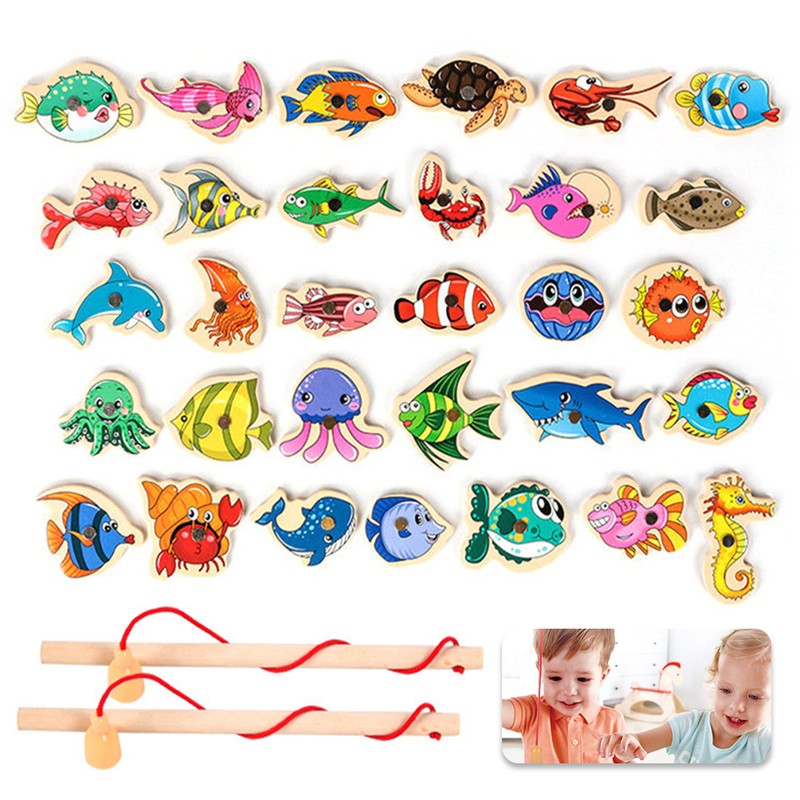 ألعاب صيد السمك لعبة صيد السمك المغناطيسية الكرتونية الحياة البحرية الإدراك الأسماك رود لعب للأطفال التعليم المبكر
