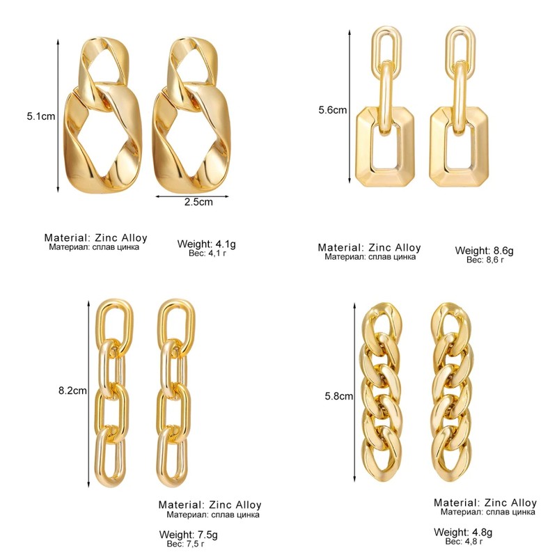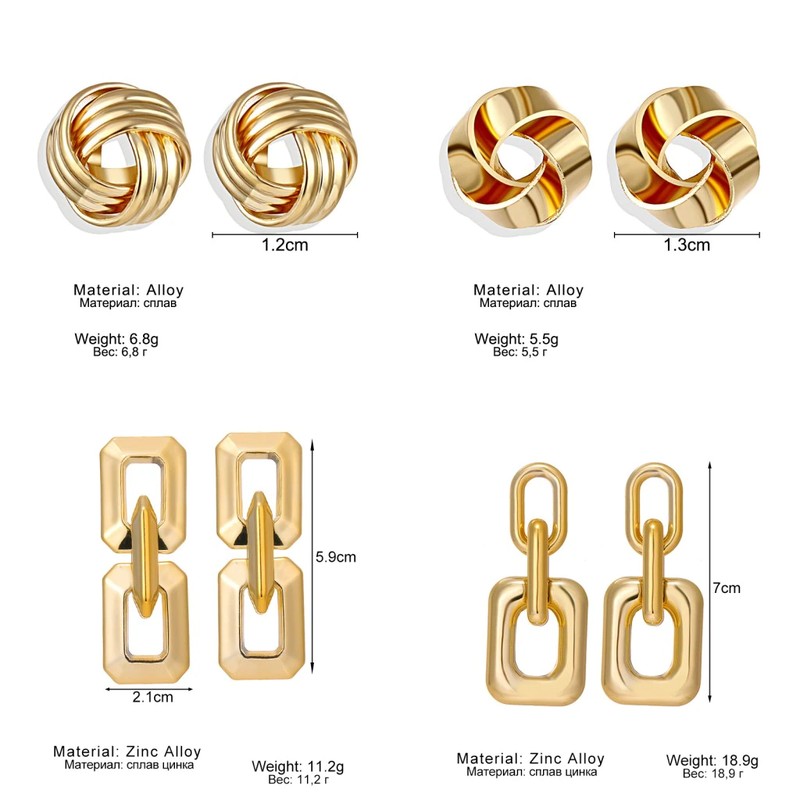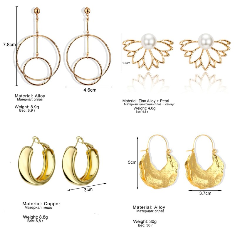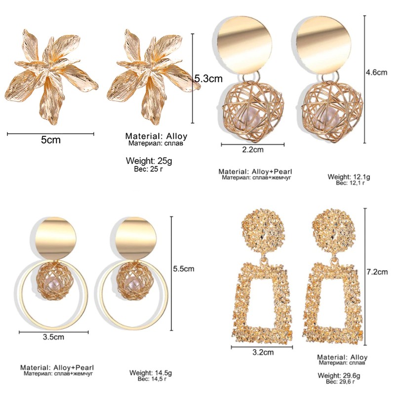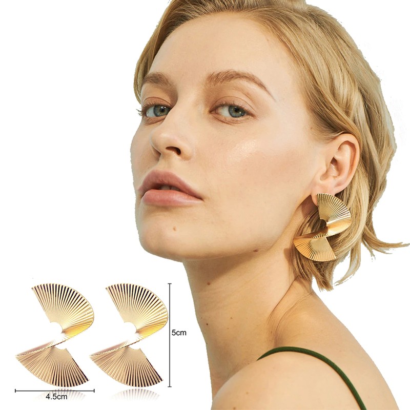 Fnio موضة خمر أقراط للنساء بيان هندسي كبير الذهب معدن إسقاط أقراط أحدث العصرية خواتم مجوهرات اكسسوارات