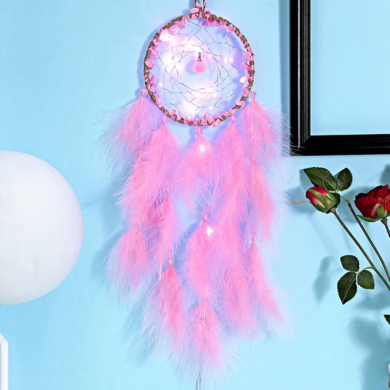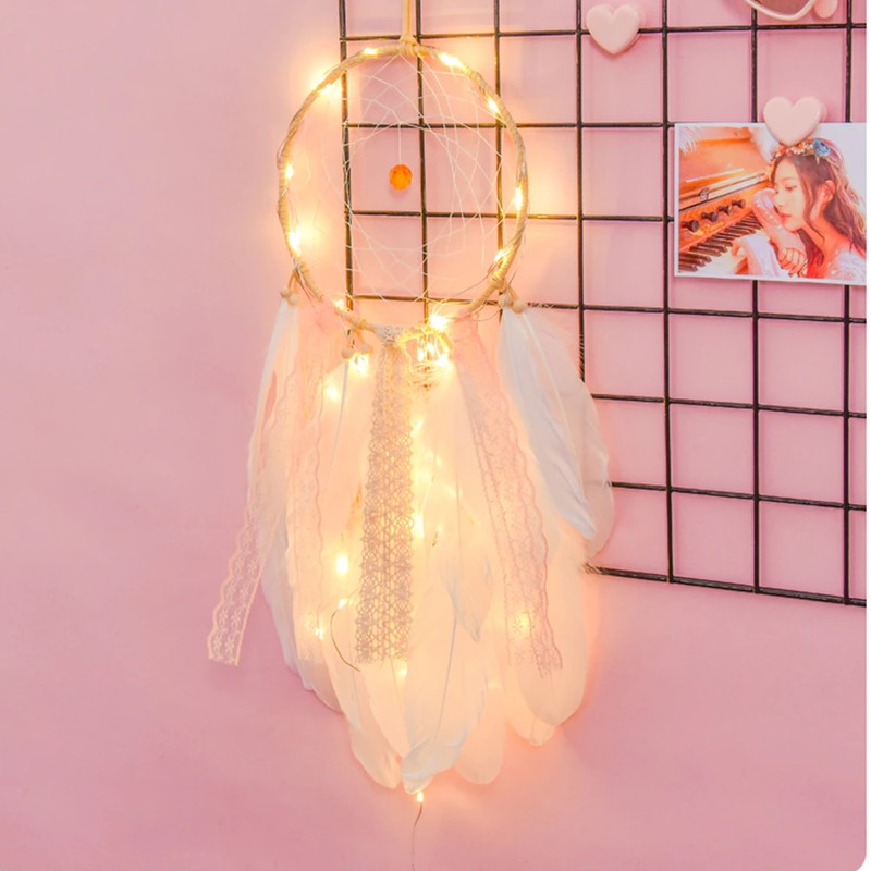 فتاة القلب حلم الماسك الوطنية ريشة الحلي الدانتيل أشرطة الريش ملفوفة أضواء الفتيات غرفة ديكور دريكاتشر