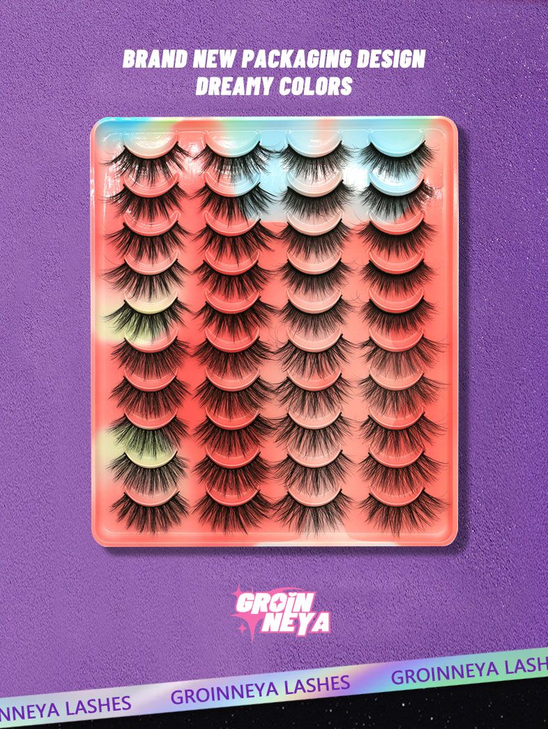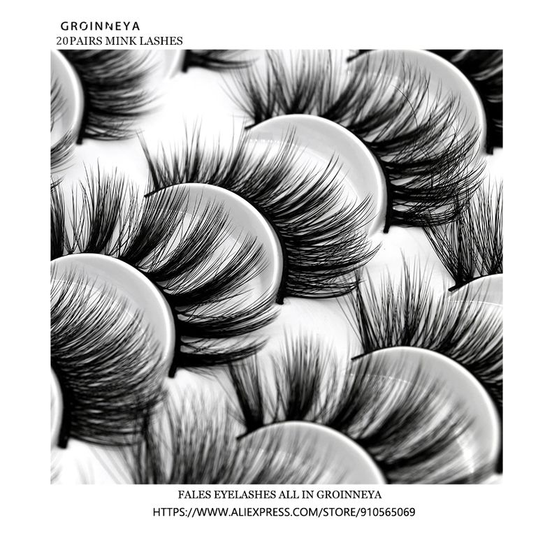 رموش Groinneya 5/10/20 Pairs ثلاثية الأبعاد من فرو المنك الطبيعي الرموش الصناعية رموش تكثيف الرموش تمديد Maquiagem