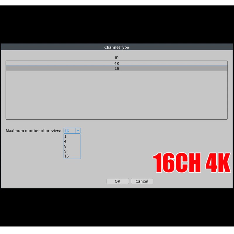 16CH: 16CH 4K / 5MP / 4MP / 3MP / 2MP / 1MP