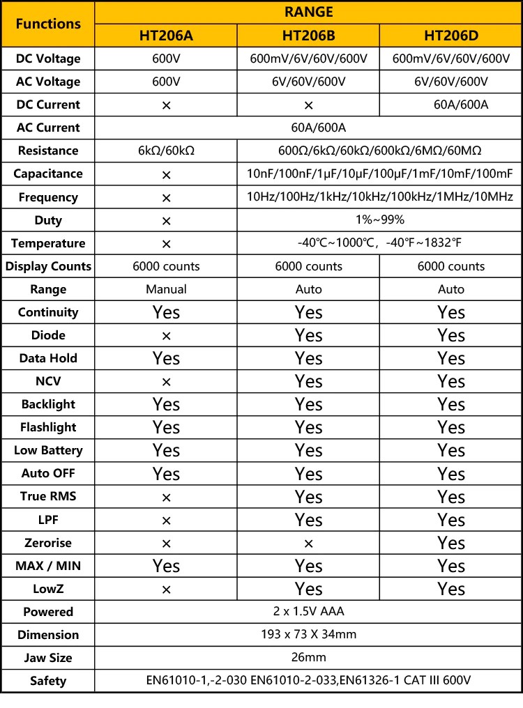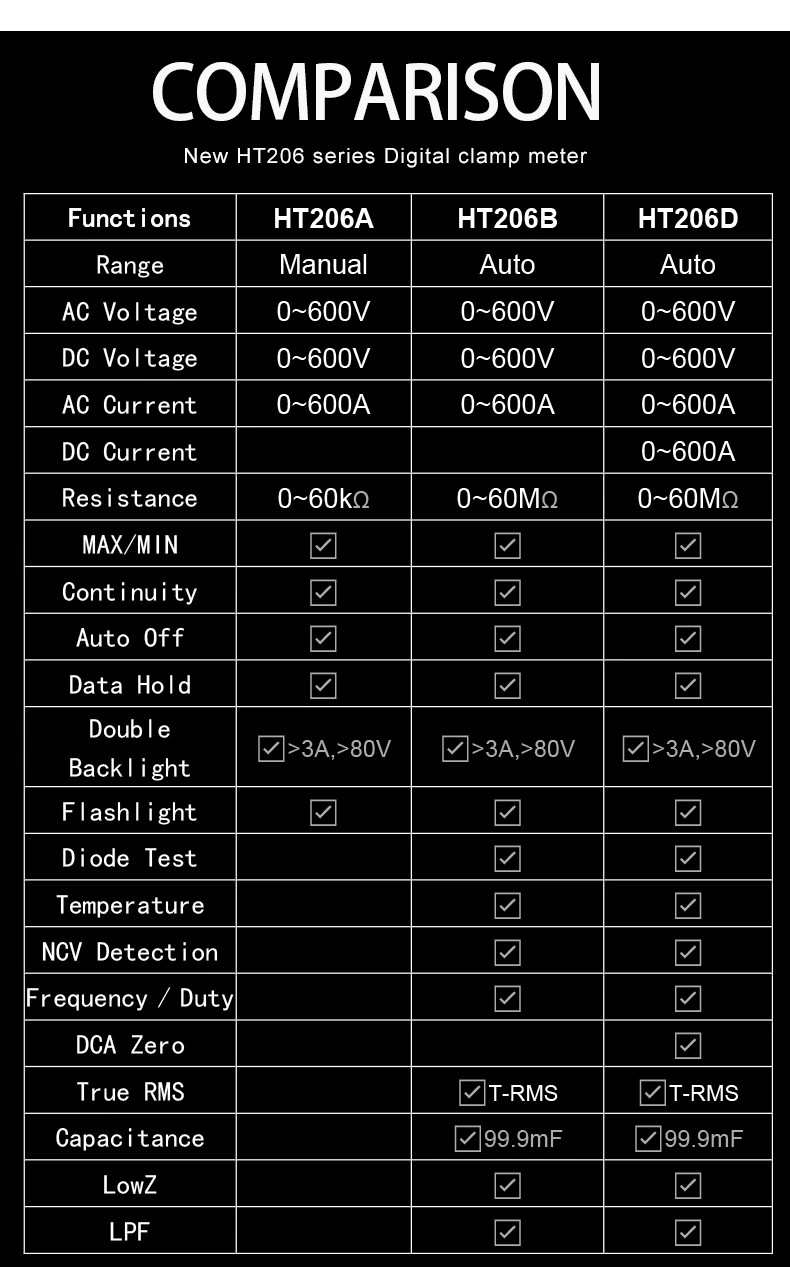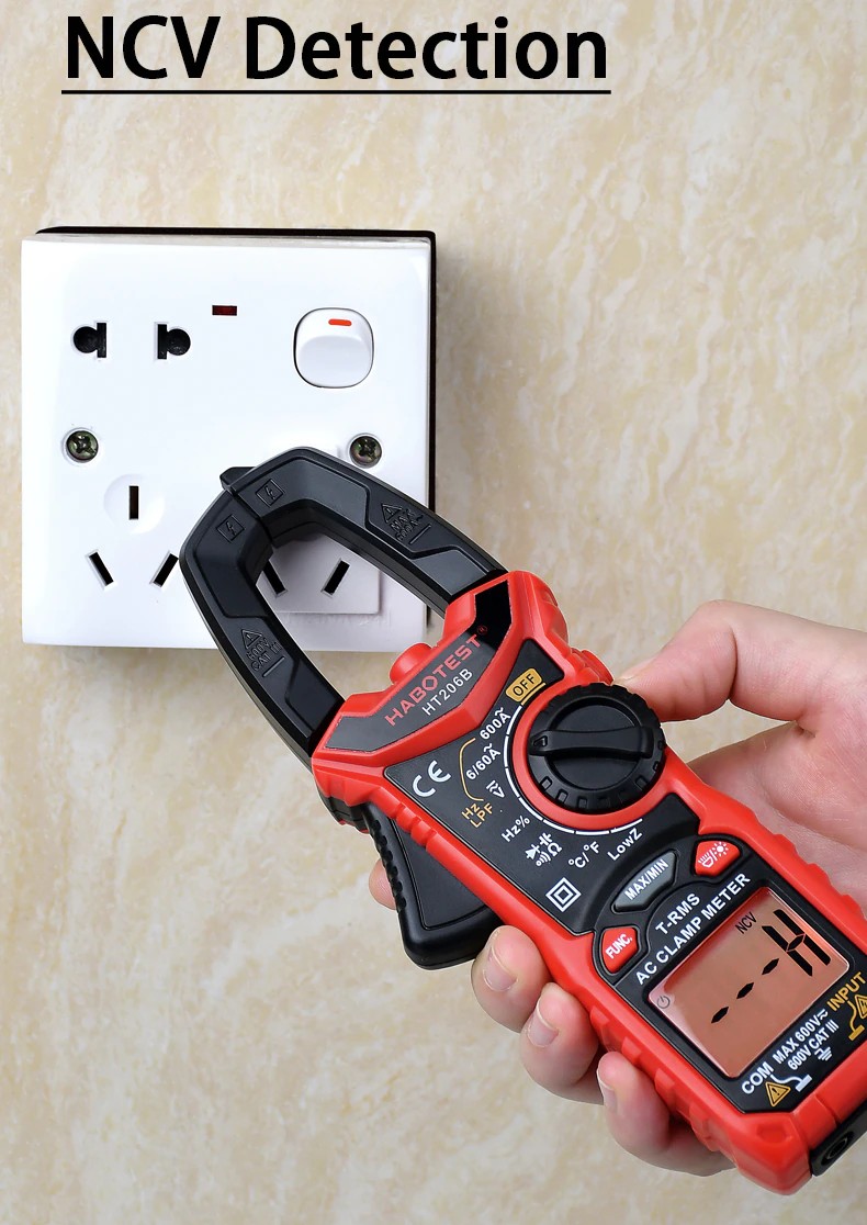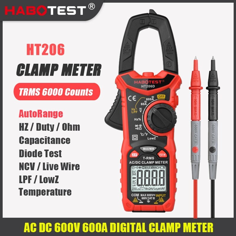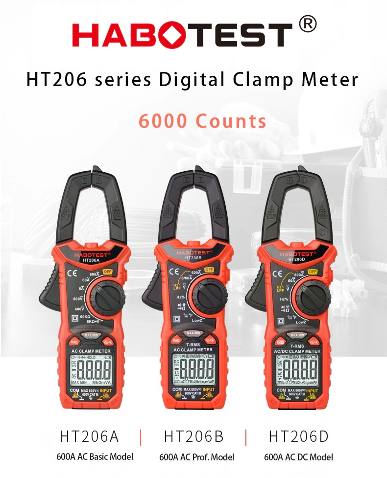 مقياس رقمي للمشابك طراز Habotest طراز Ht206 يعمل بالتيار المتردد ومقياس متعدد لمقياس التيار المستمر Pinza Amperimitica مقياس Rms عالي الدقة اختبار Ncv Ohm