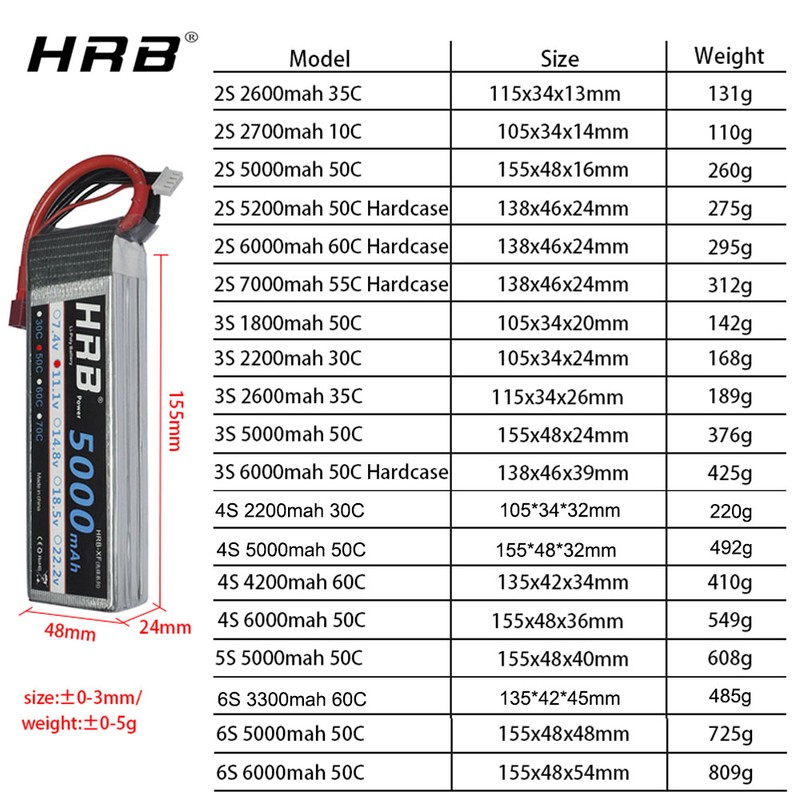 التخليص بيع HRB يبو البطارية 2S 3S 4S 5S 6S 7.4V 11.1V 14.8V 1500mah 2200mah 3300mah 4200mah 5000mah 5200mah 6000mah T/XT60