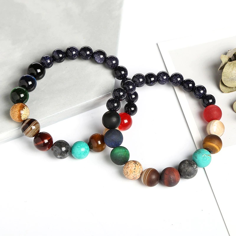 Jd ثمانية الكواكب حبة سوار الرجال الكون الحجر الطبيعي اليوغا الشمسية شقرا سوار للنساء الرجال مجوهرات هدايا عيد
