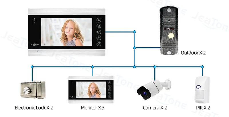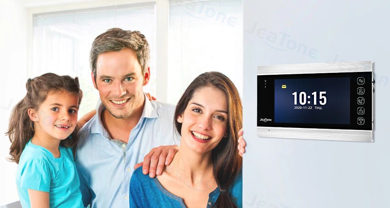 مع JeaTone 7 "السلكية نظام الفيديو باب الهاتف ، يمكن للزوار استخدام المكالمات لوحة ، ثم يمكنك استخدام رصد داخلي فتح والرصد والتقاط الصور وتسجيل الفيديو.