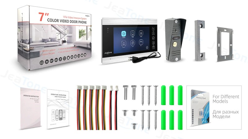 JeaTone 7 بوصة فيديو نظام اتصال داخلي يدعم ربط مجس الأشعة تحت الحمراء ، كاميرا التناظرية و قفل إلكتروني ، والتي يمكن أن تحمي منزلك والممتلكات في جميع الجوانب.