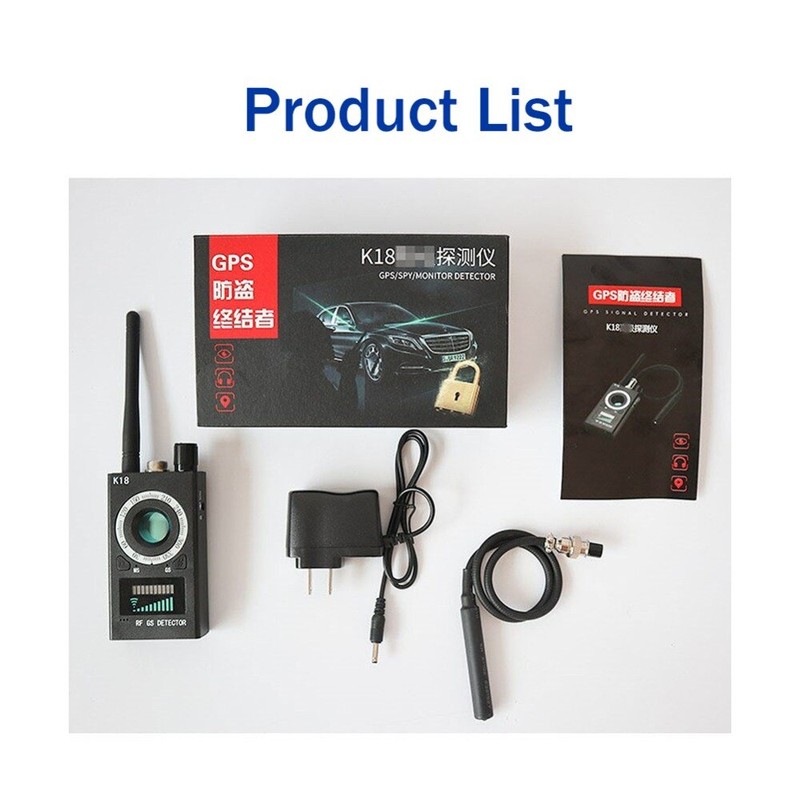 كاشف الكاميرا متعدد الوظائف K18 ، 1 ميجاهرتز-6.5 جيجاهرتز ، Gsm مستشعر علة الصوت عدسة إشارة Gps تعقب Rf ، ماسح ضوئي للكشف عن الراديو