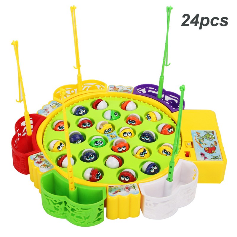لعبة صيد دوارة كهربائية للأطفال ، لعبة موسيقية ، مع طبق سمكة موسيقية ، ألعاب رياضية خارجية مغناطيسية