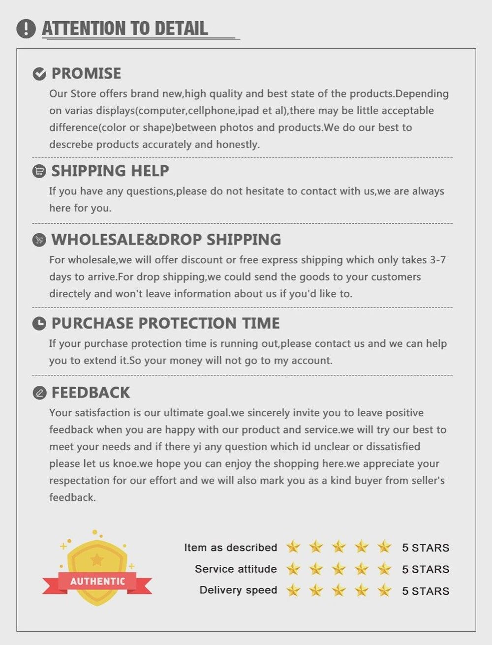 4.خدمة "الإرجاع المجاني":العودة لأي سبب في غضون 15 يومًا. الولايات المتحدة وكندا وأستراليا والمملكة المتحدة وفرنسا وإسبانيا وألمانيا وروسيا المدعومة