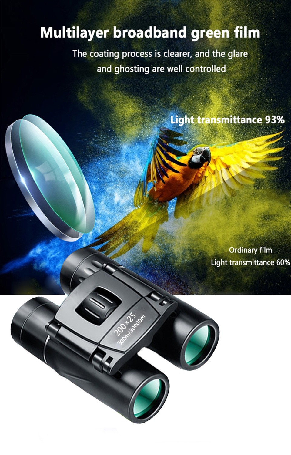 مجهر تكبير صغير محمول Hd 30000 متر مناظير قوية 200X25 قابلة للطي طويلة المدى ضوء منخفض للرؤية الليلية المهنية