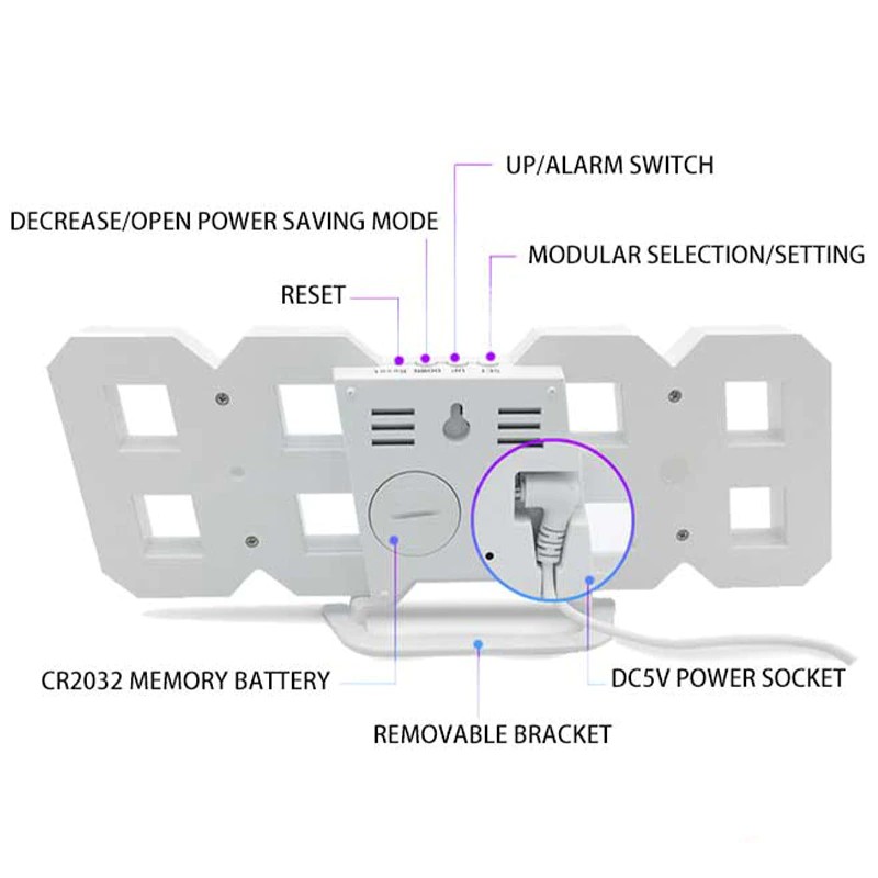 البطارية: CR2032 (تستخدم لتخزين الوقت عندما يتم قطع الطاقة (غير المدرجة) ، يتم تشغيل الساعة من قبل كابل يو اس بي)