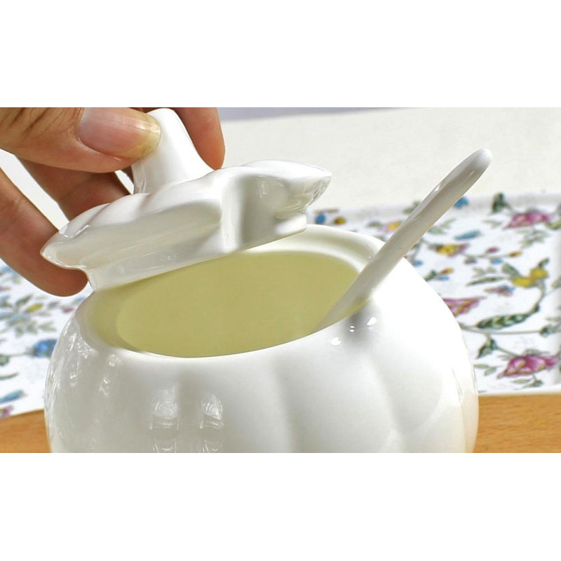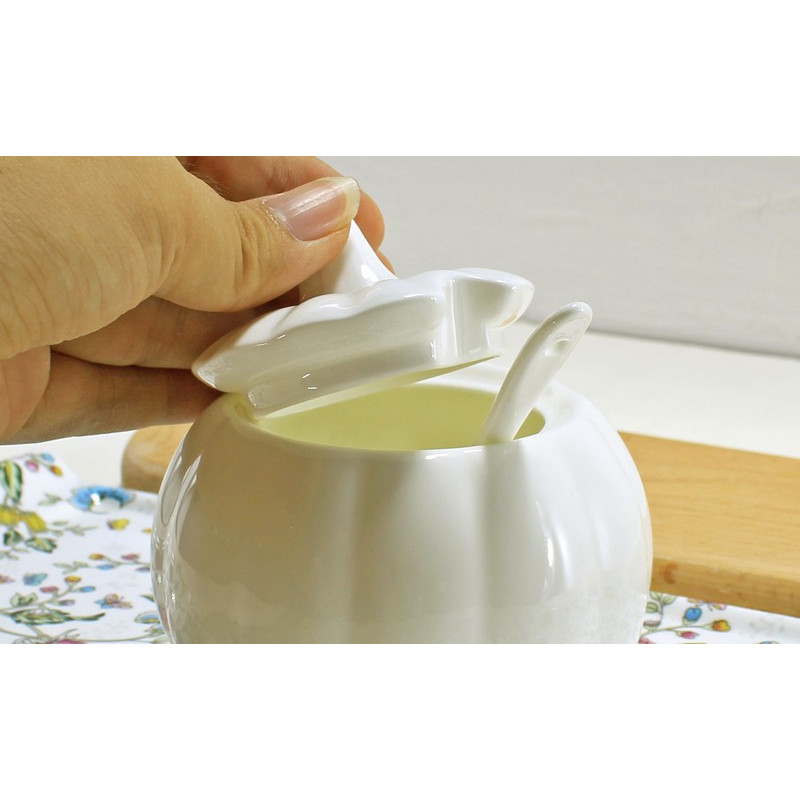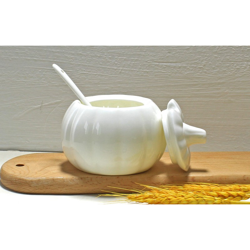 وعاء سكر قهوة صيني مع ملعقة ، جرة عسل بورسلين ، موزع سكر سيراميك ، وعاء عسل صغير