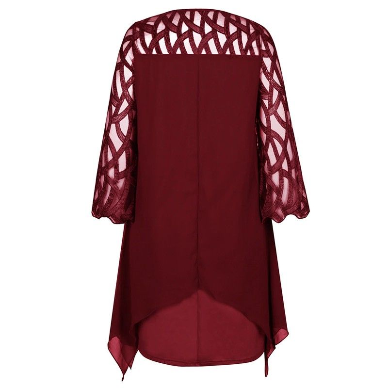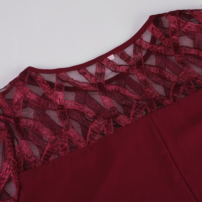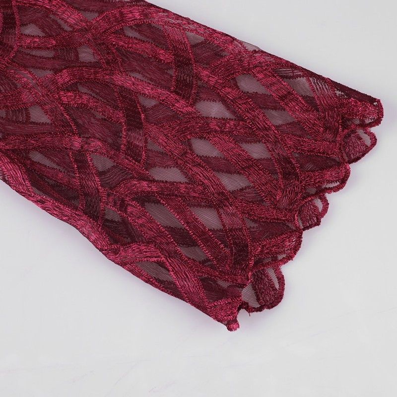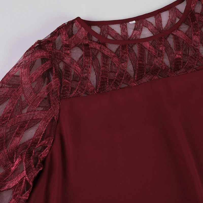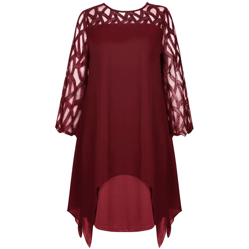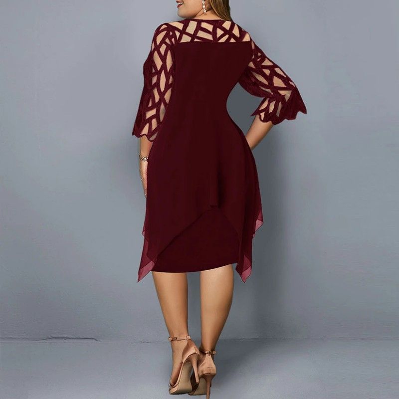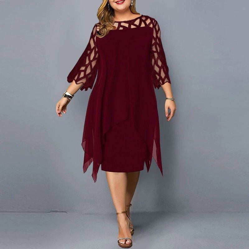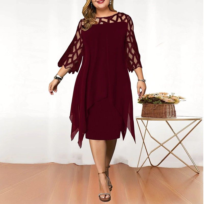 فستان حريمي مقاس كبير فستان ميدي غير رسمي أنيق شبكي للحفلات المسائية للسيدات لون أحمر خمري ملابس نسائية ملابس نادي الزفاف