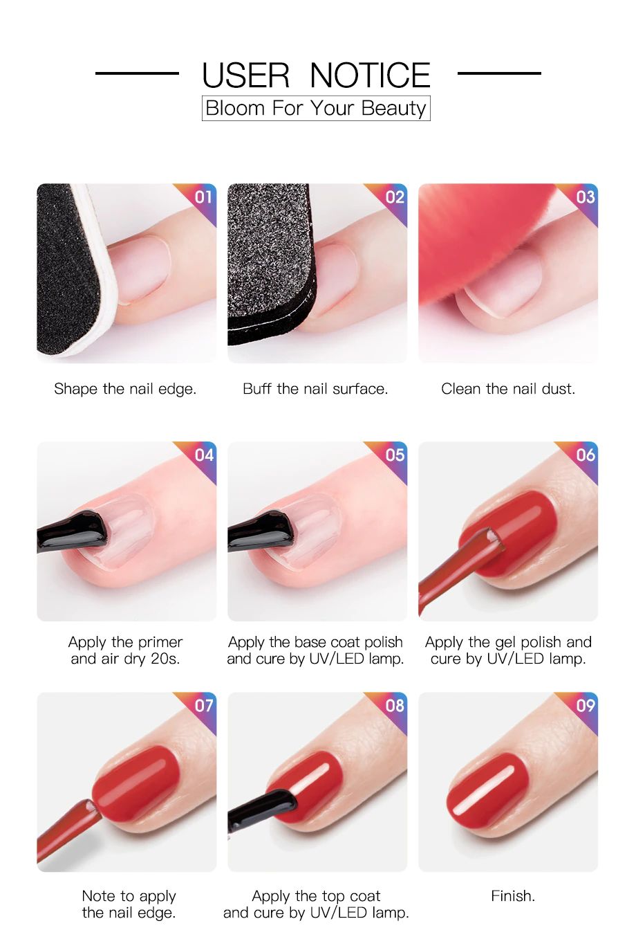 -2. تطبيق معطف قاعدة من الأساس من بشرة إلى الحافة الحرة (تذكر لإغلاق حافة الظفر). علاج الأظافر تحت مصباح ليد لمدة 10 ثانية أو ضوء الأشعة فوق البنفسجية لمدة 2 دقيقة.